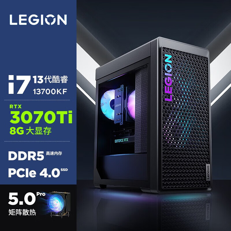 联想(Lenovo)JDG联想拯救者刃7000K 2023Ai动画电脑主机(i7-13700KF RTX3070TI 8G显卡 定制 64GDDR5 2TBSSD 升级 ARGB侧透)
