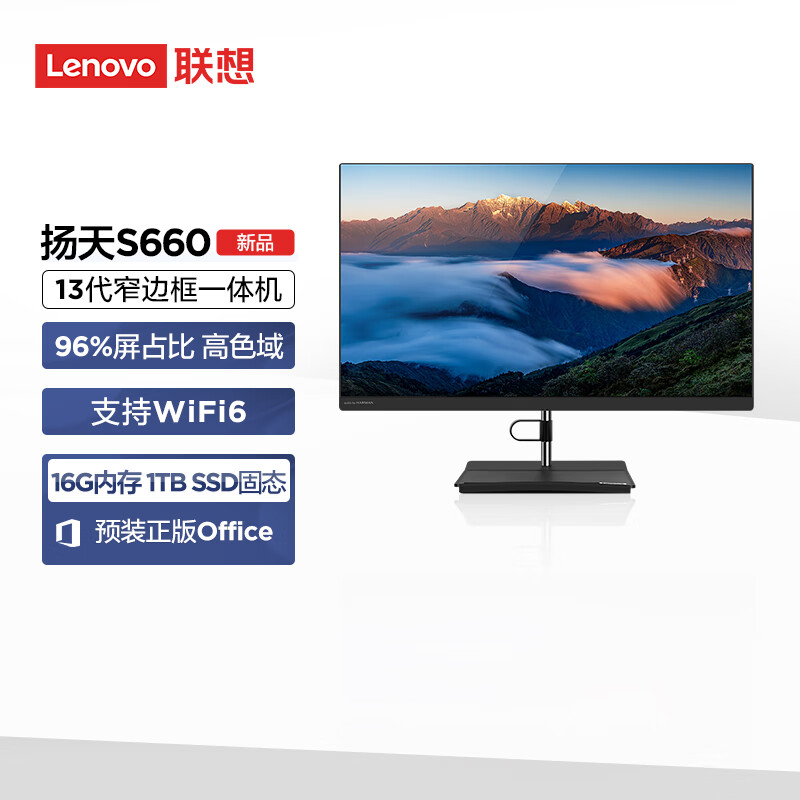 联想(Lenovo)扬天S660 23.8英寸家用高清网课商用办公一体机台式电脑主机(13代酷睿i5-13420H 16G 1TB SSD)