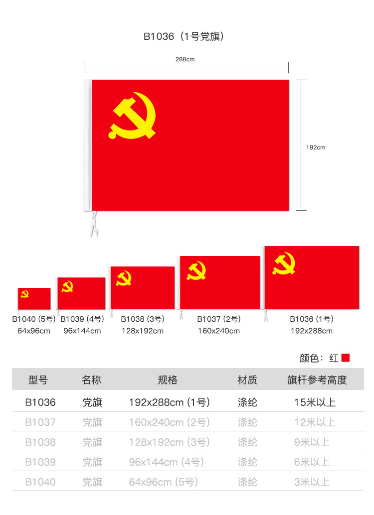 齐心(Comix) 中国党旗涤纶疏水面料室内户外 一号党旗1号 (192*288CM) 中国红 B1036 自营