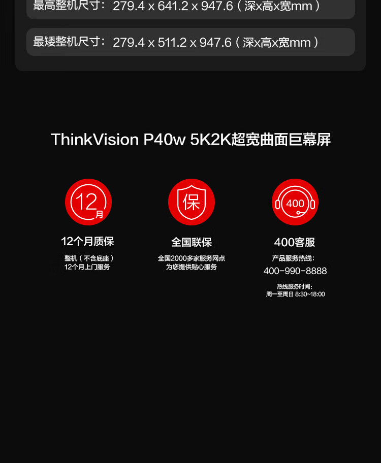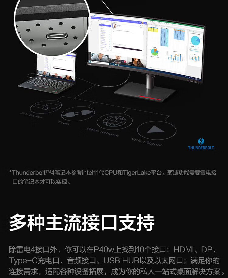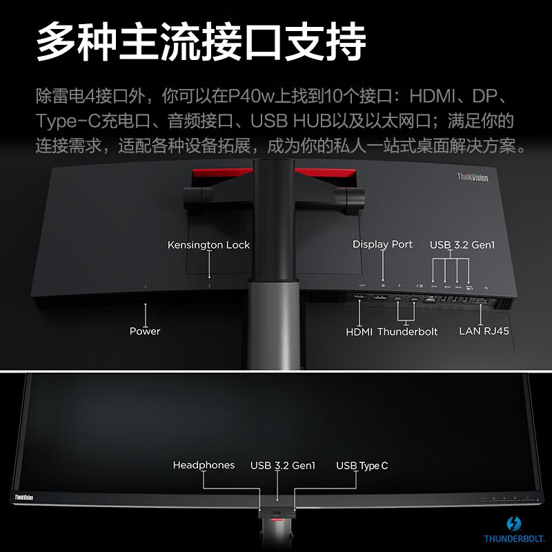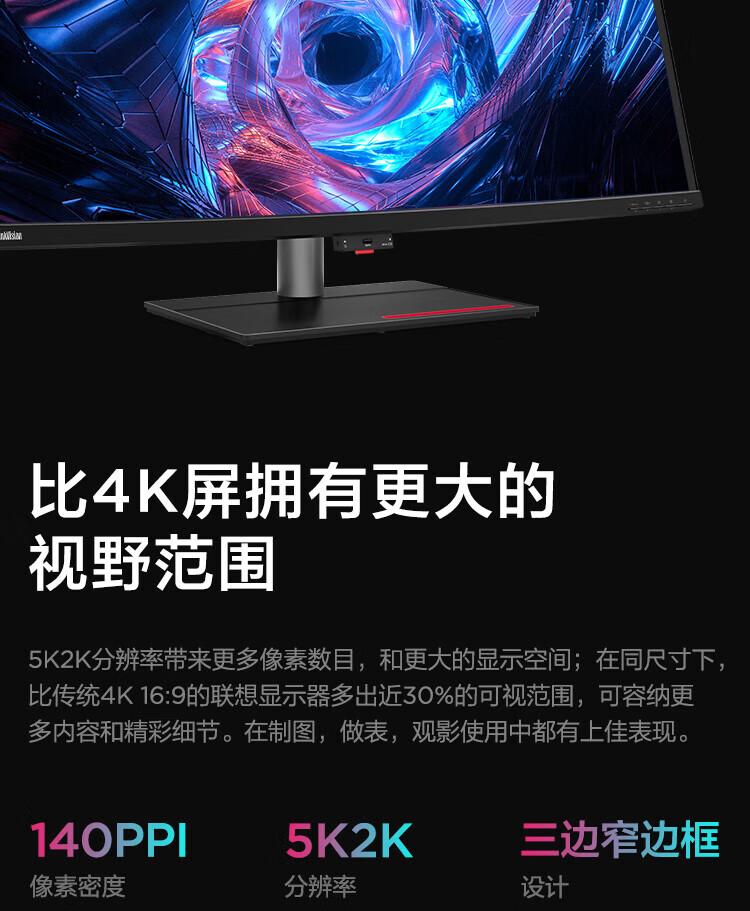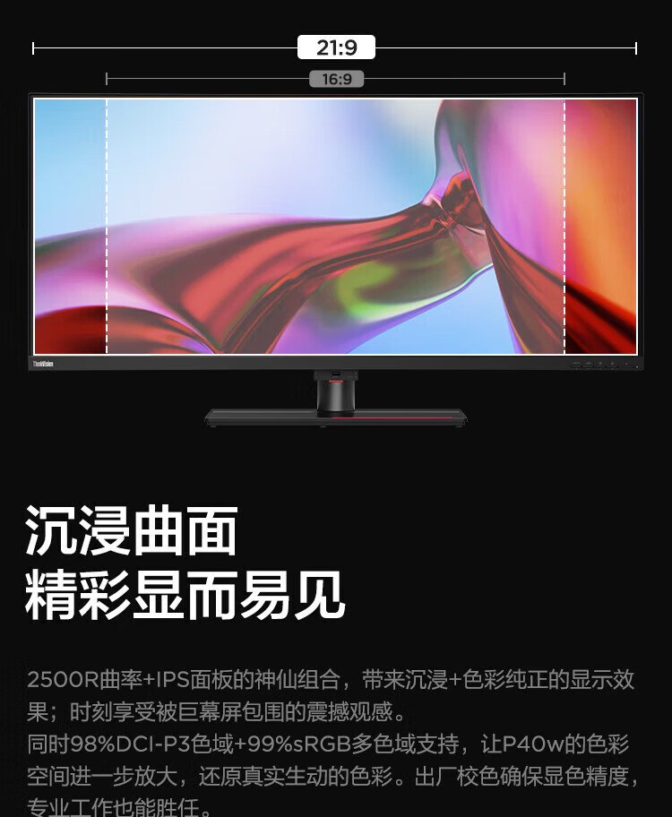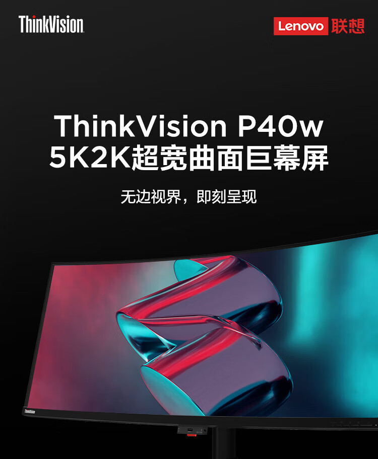 联想(ThinkVision)显示屏电脑屏幕显示器2K护眼笔记本外接 P40w-20 39.7英寸 自营
