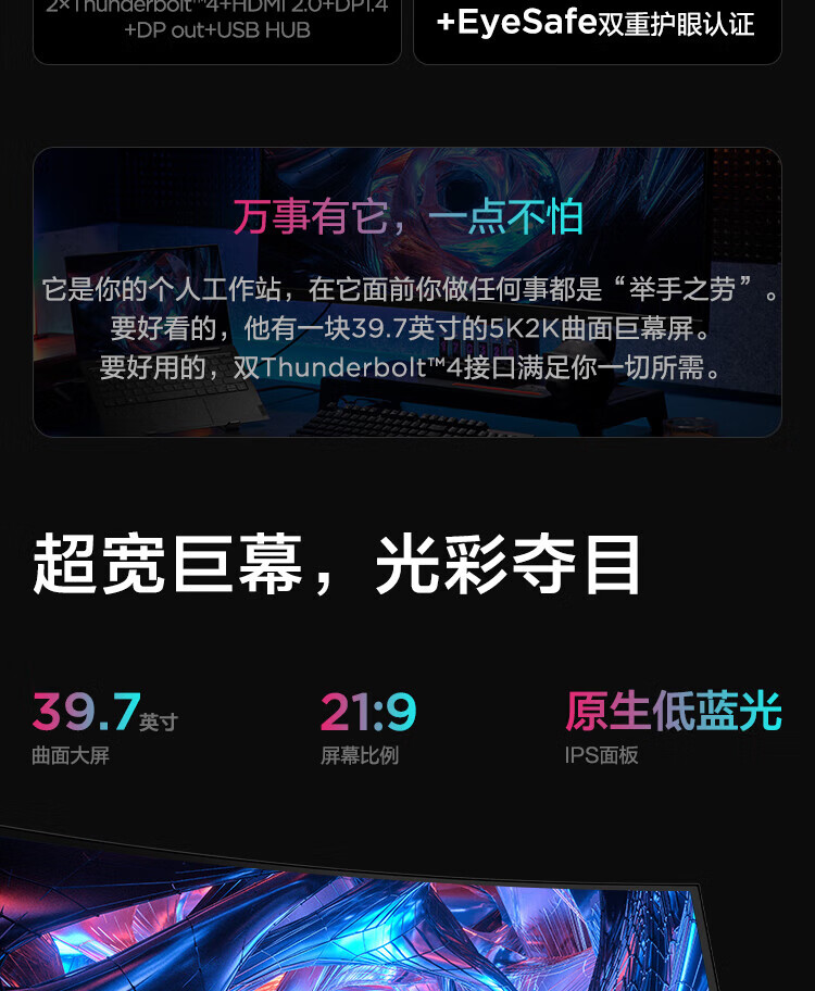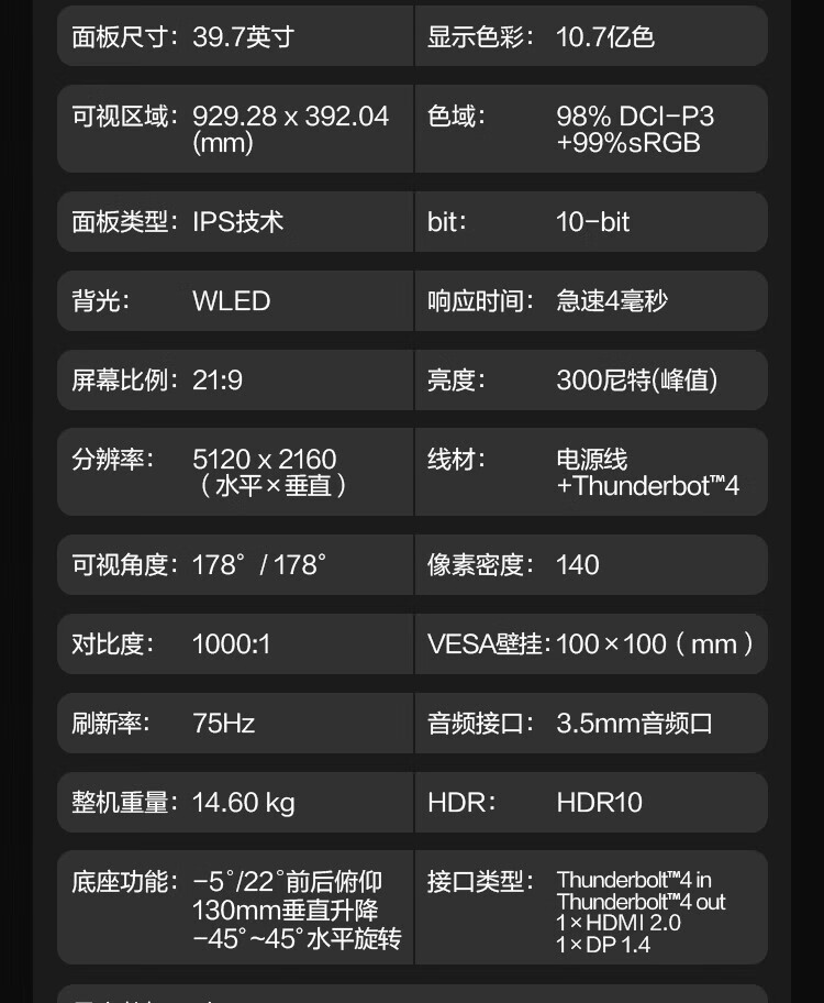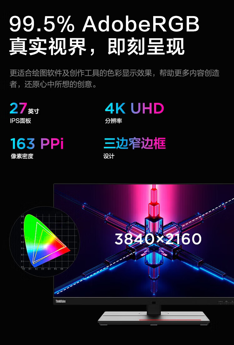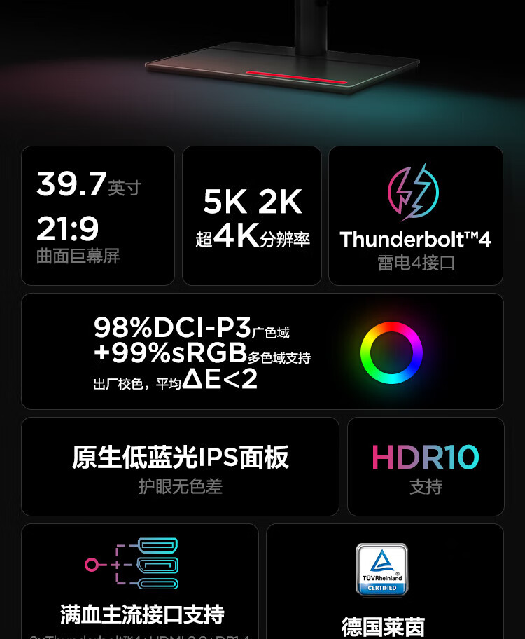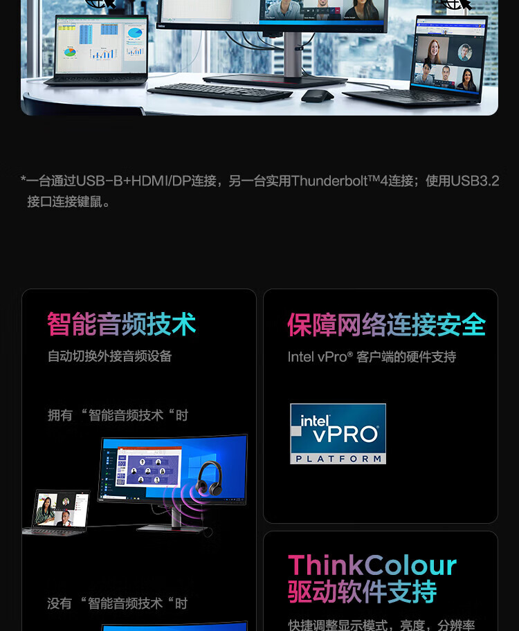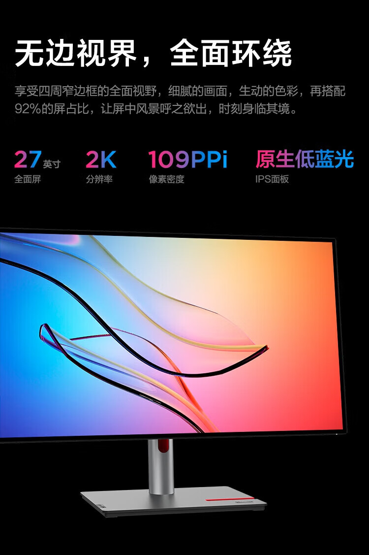 联想(ThinkVision)显示屏电脑屏幕显示器2K护眼笔记本外接 P40w-20 39.7英寸 自营