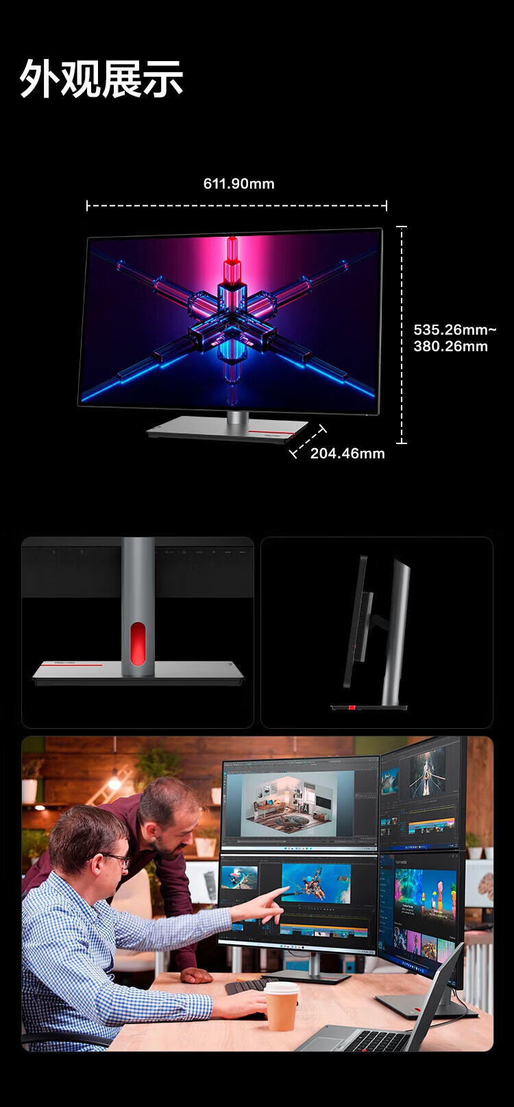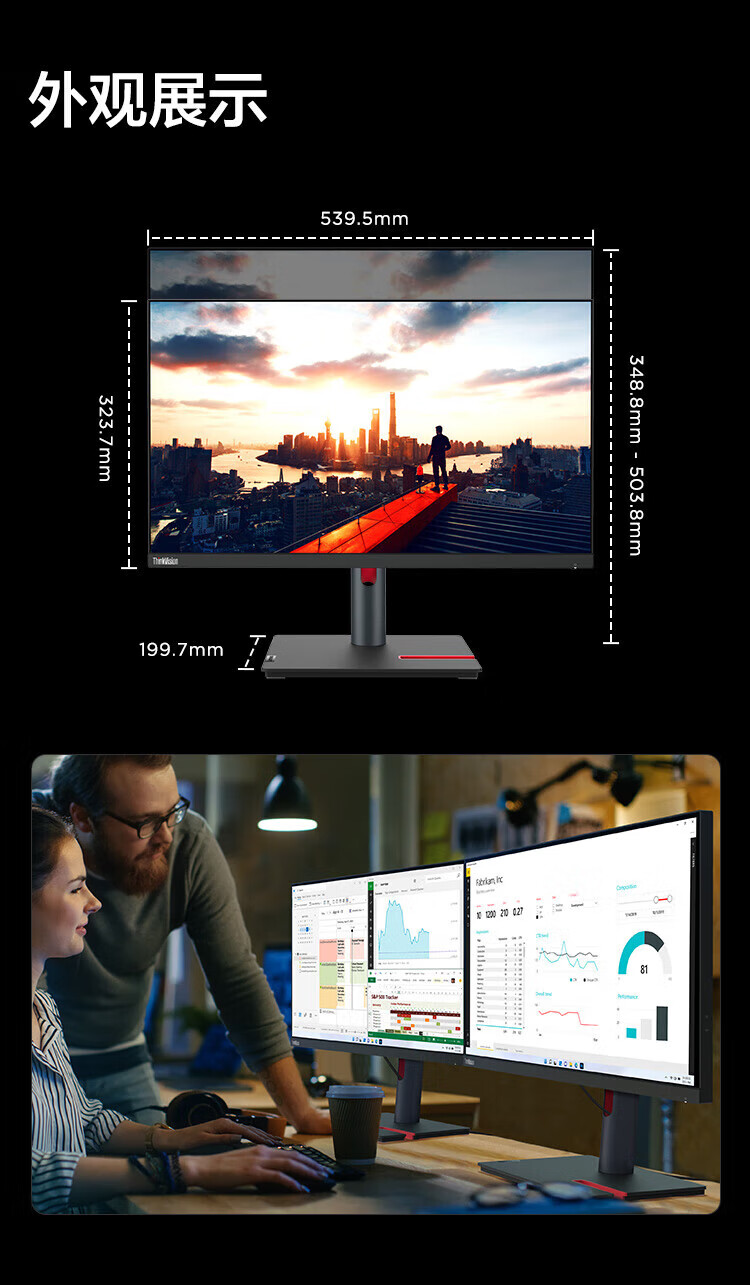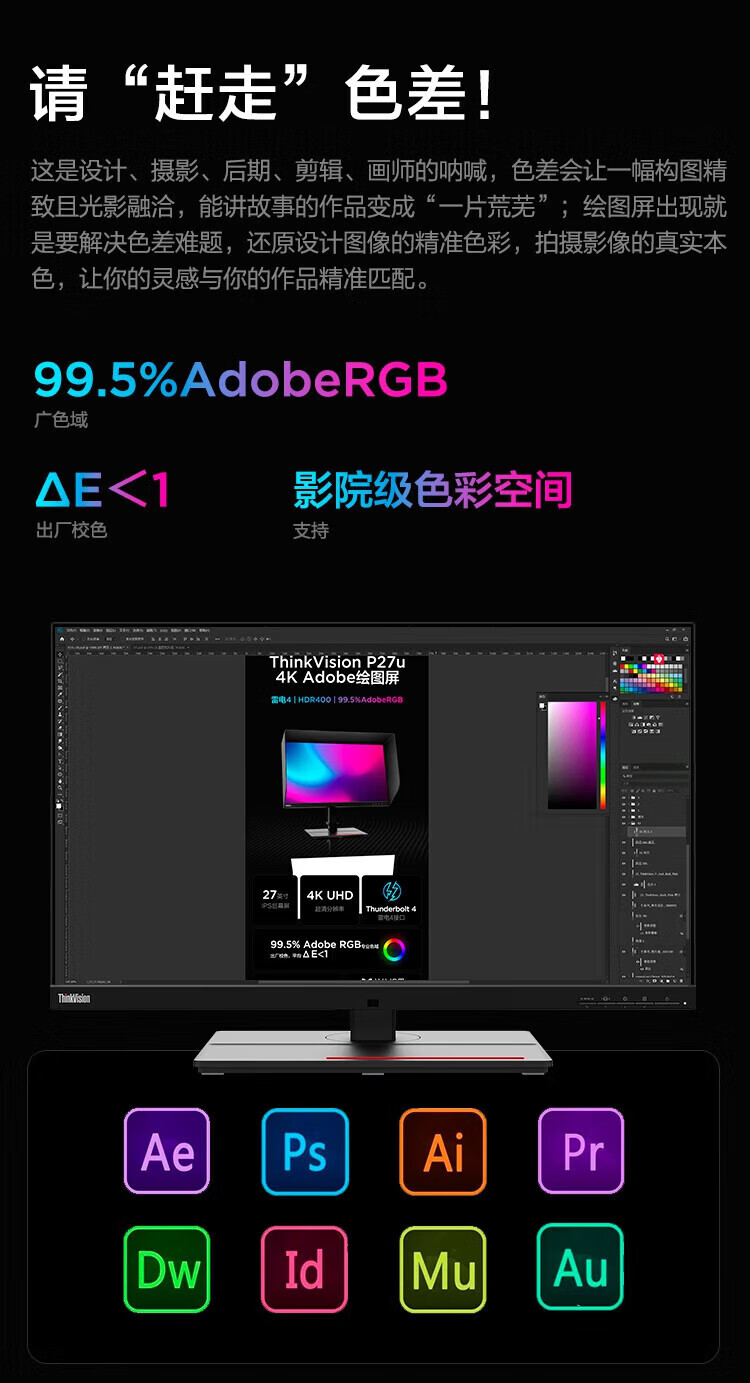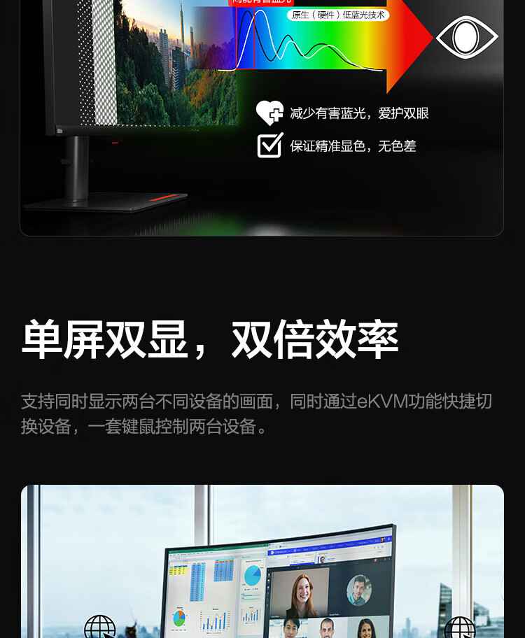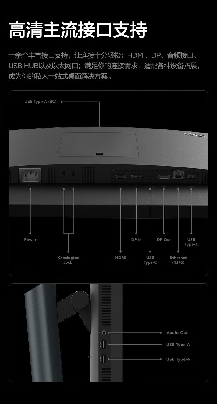 联想(ThinkVision)显示屏电脑屏幕显示器2K护眼笔记本外接 P40w-20 39.7英寸 自营