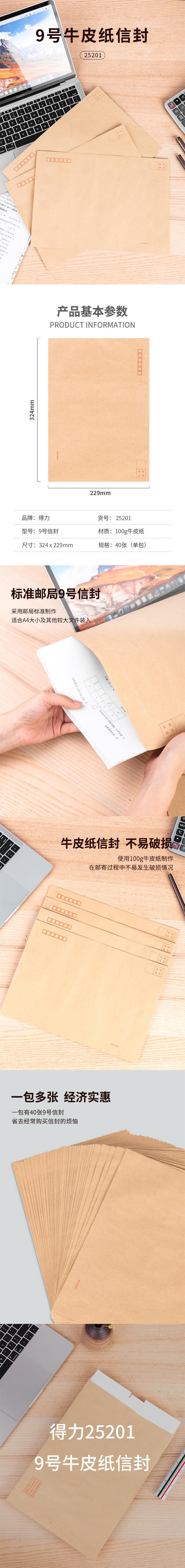 得力(deli)9号A4牛皮纸大信封 邮局标准信封229*324mm 40张/包 25201 自营