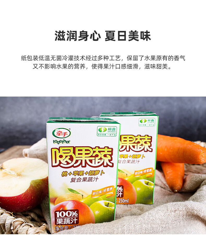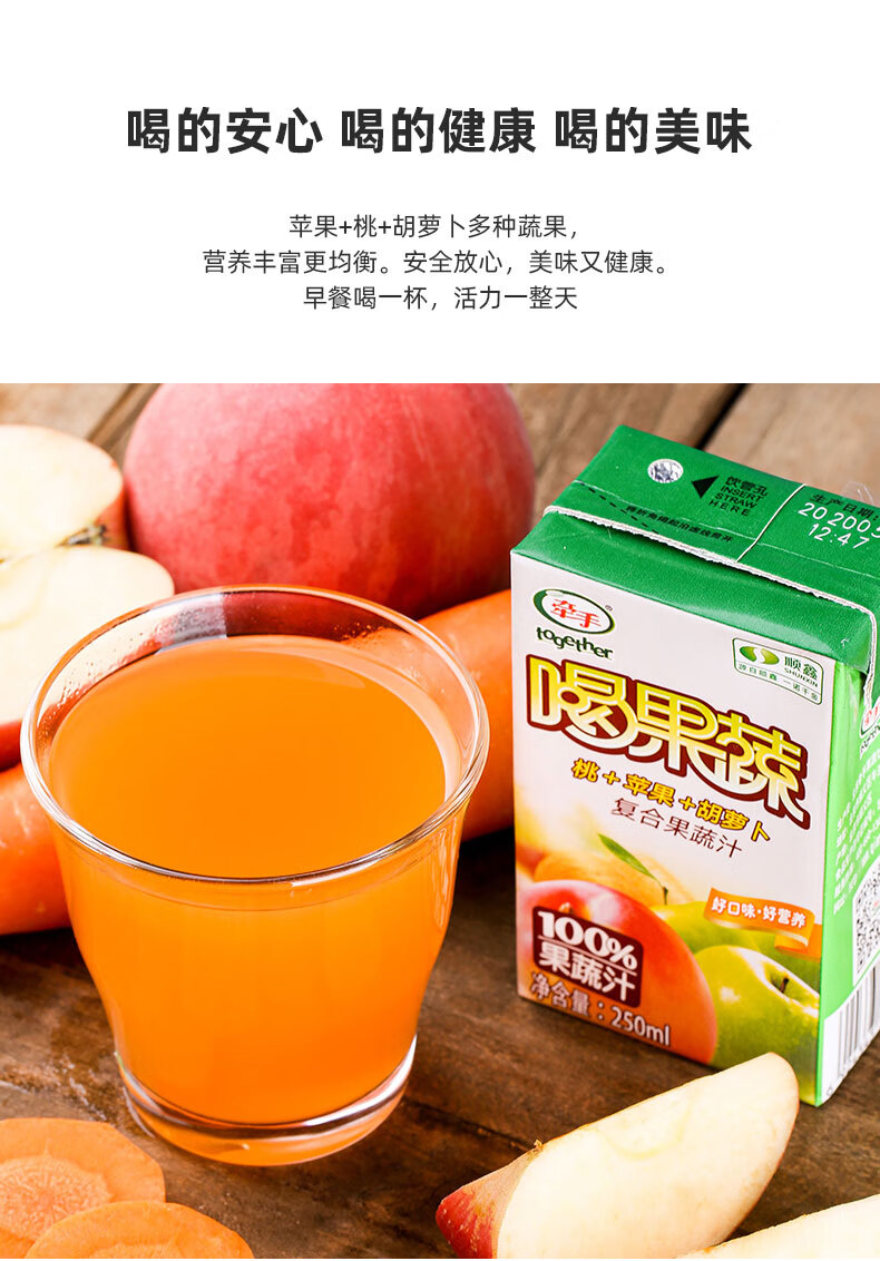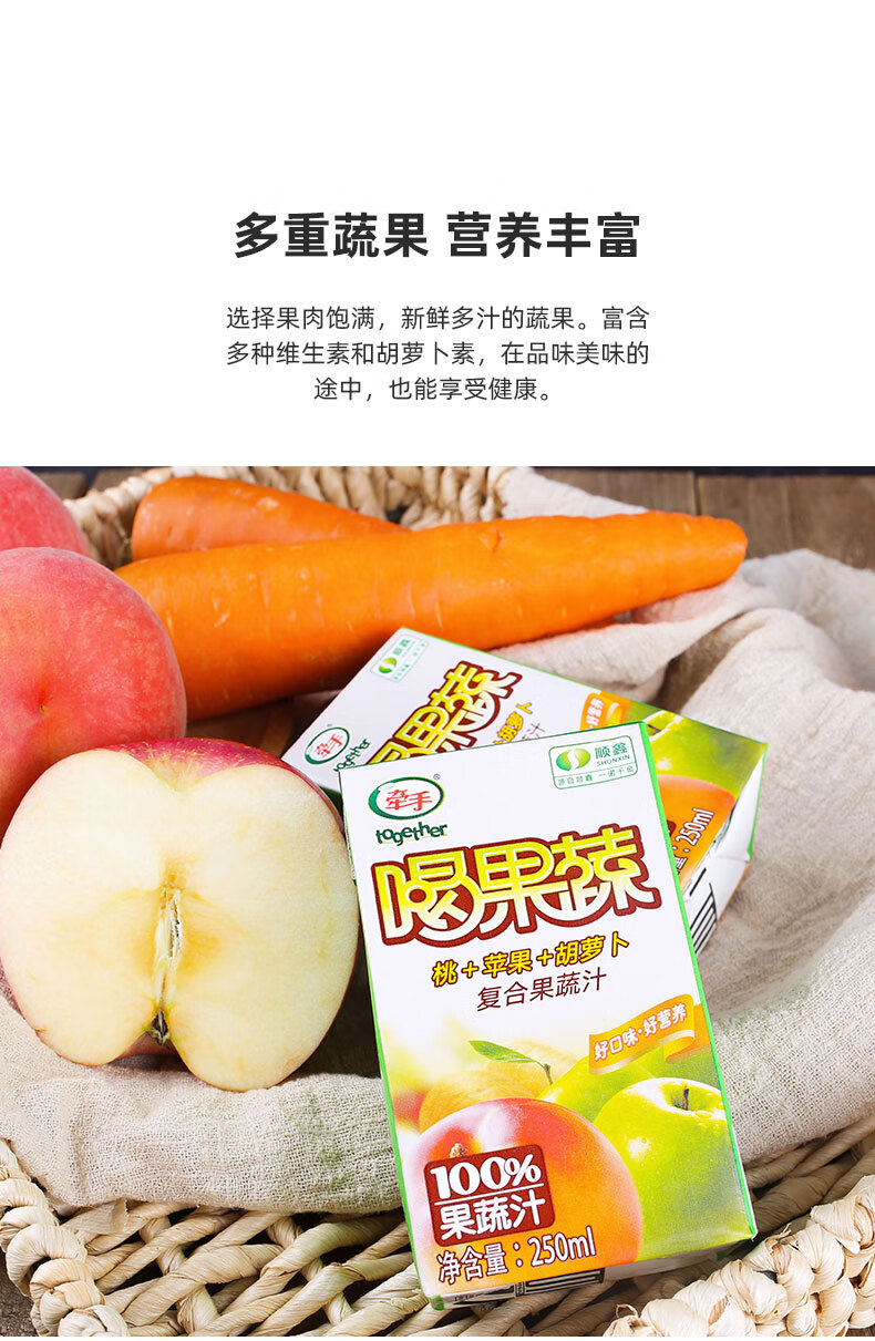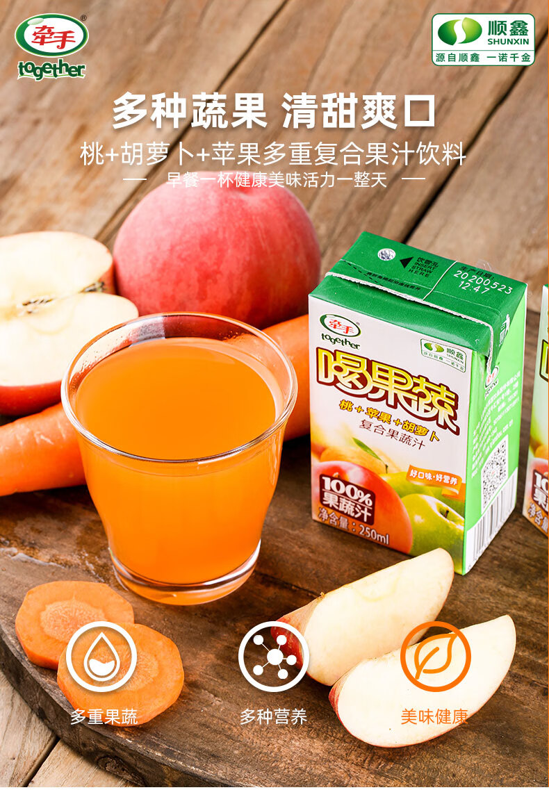 牵手(together) 牵手together果汁饮料果蔬汁250ml胡萝卜桃苹果复合果蔬汁 喝果蔬胡桃苹10盒 自营