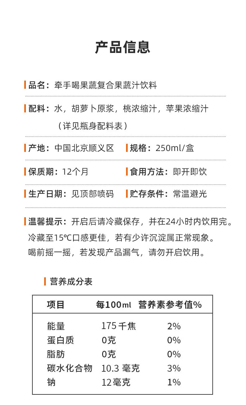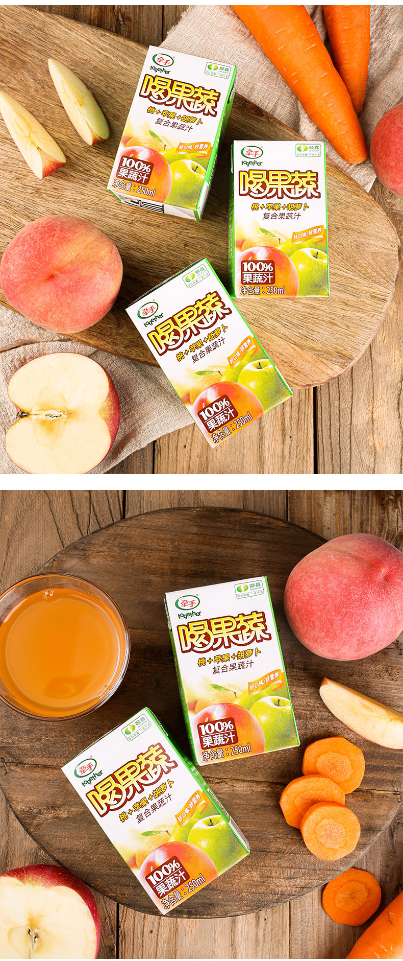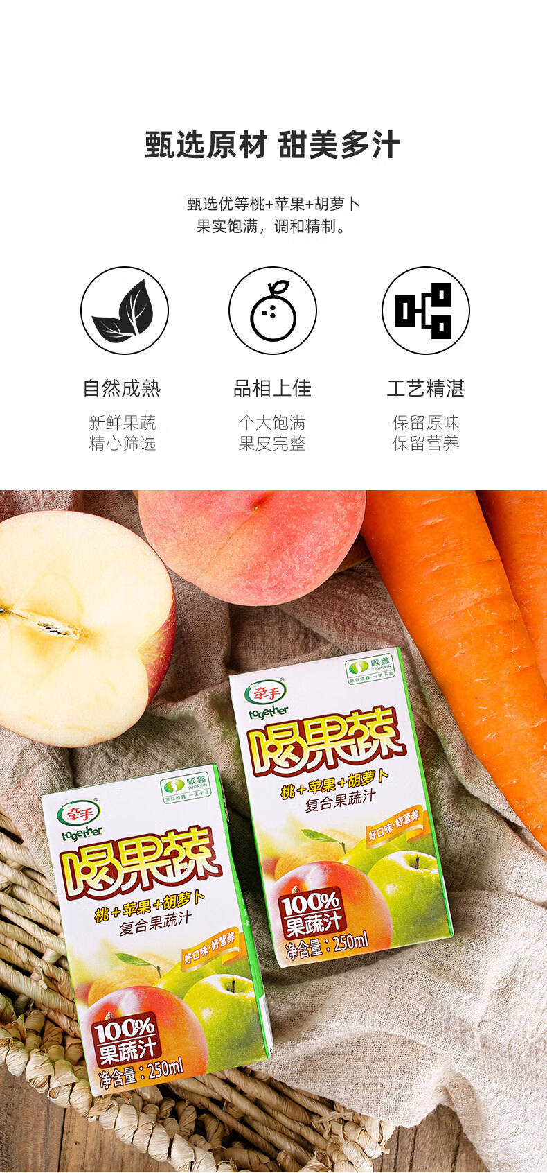 牵手(together) 牵手together果汁饮料果蔬汁250ml胡萝卜桃苹果复合果蔬汁 喝果蔬胡桃苹10盒 自营