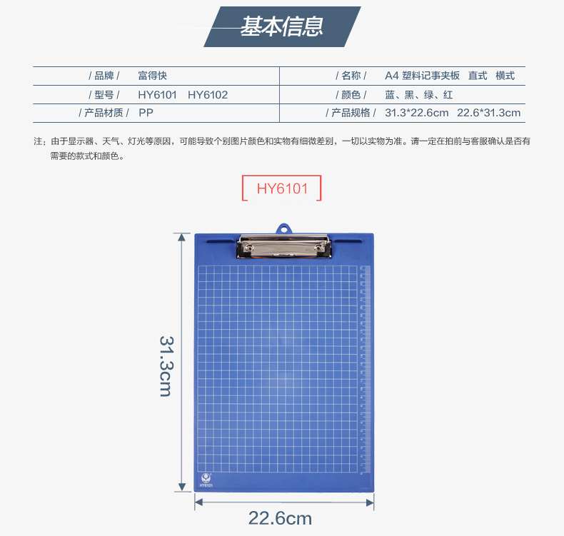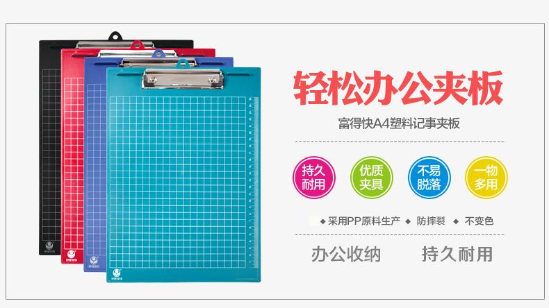 富得快 垫板夹写字板夹菜单夹书写垫字板点菜夹 A4文件夹板 黑色 竖式 板夹 HY6101 自营