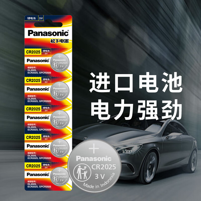 松下(Panasonic)CR2025进口纽扣电池电子3V适用汽车遥控器电子秤3D眼镜CR2025 五粒 自营