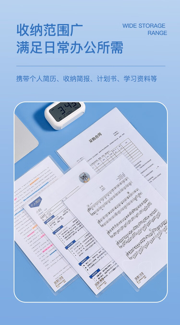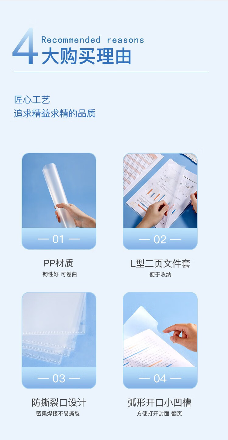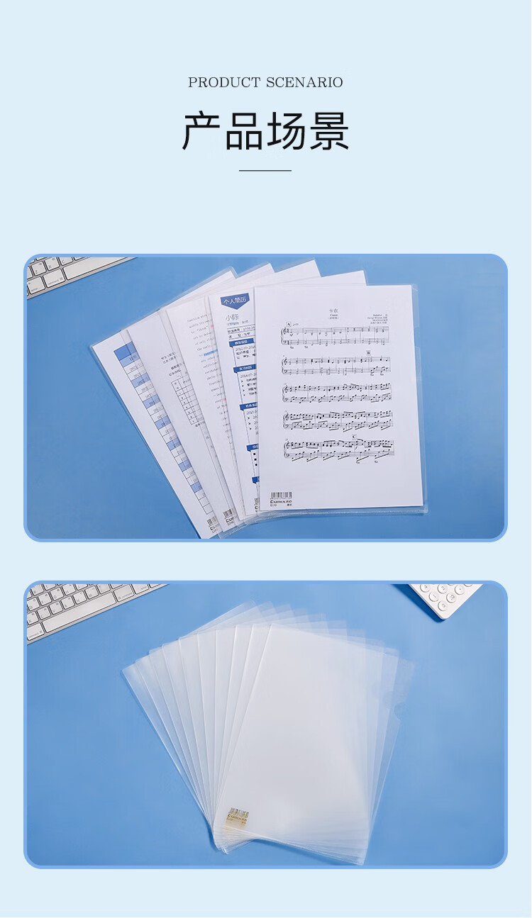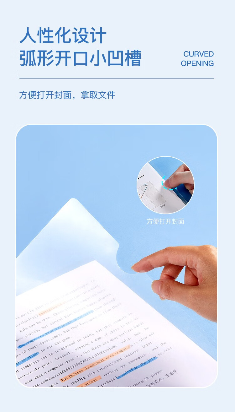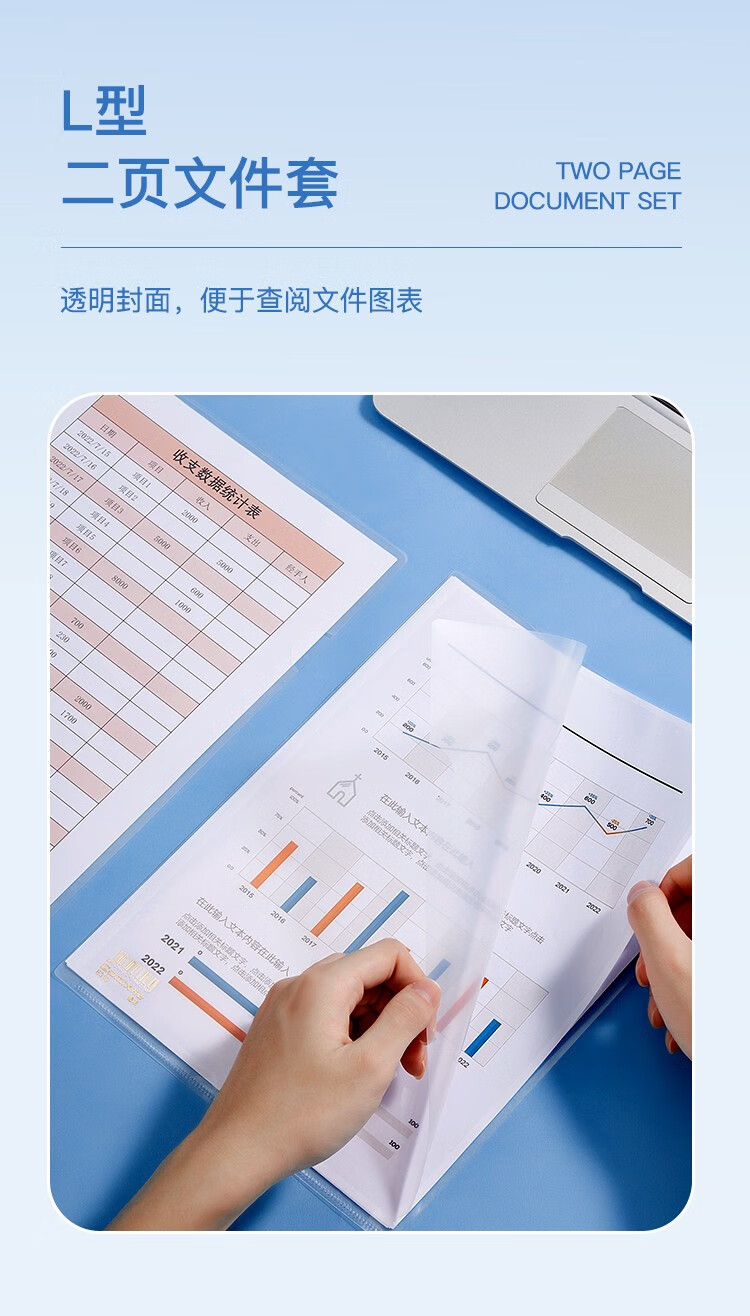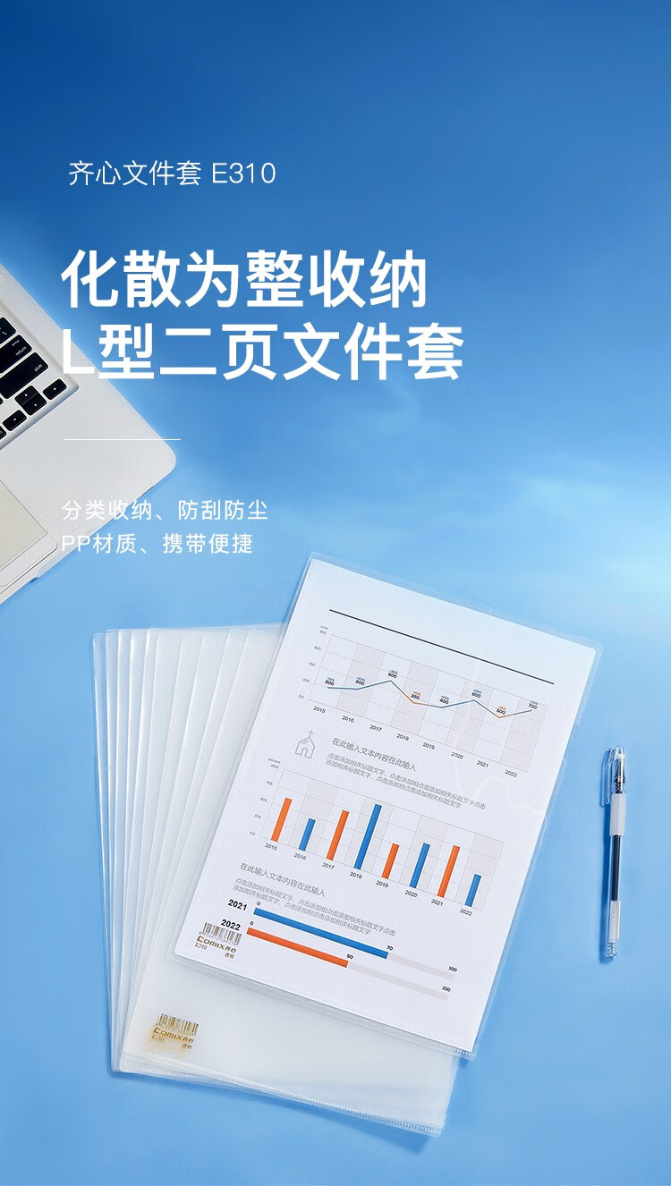 齐心(COMIX) A4二页文件套 透明单片夹 L型文件袋 全白透明 E310 10个装 透明白 自营