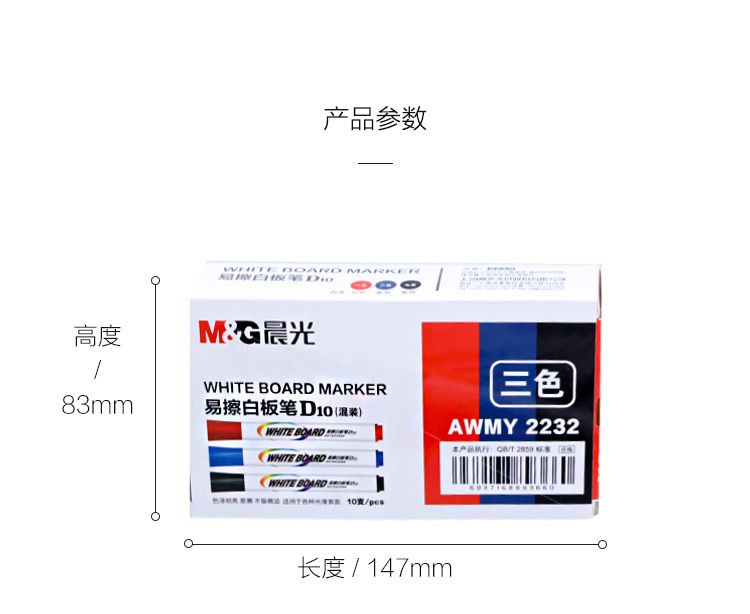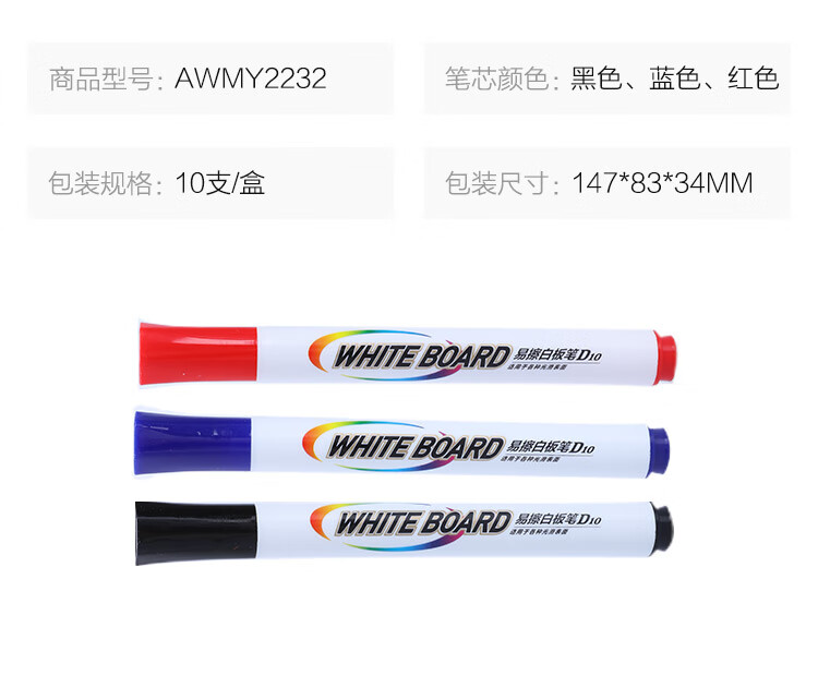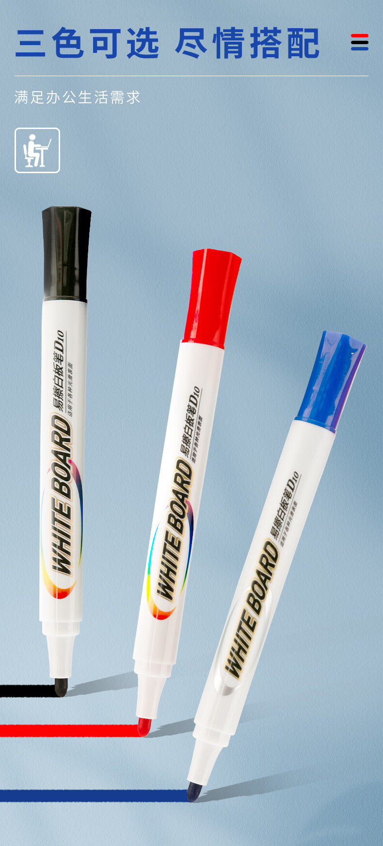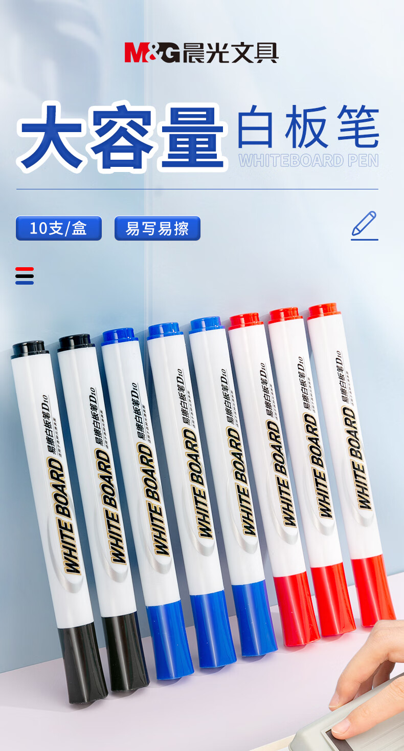 晨光(M&G)文具白板笔可擦套装 单头易擦办公会议笔(7黑+2蓝+1红) 10支/盒AWMY2232 自营