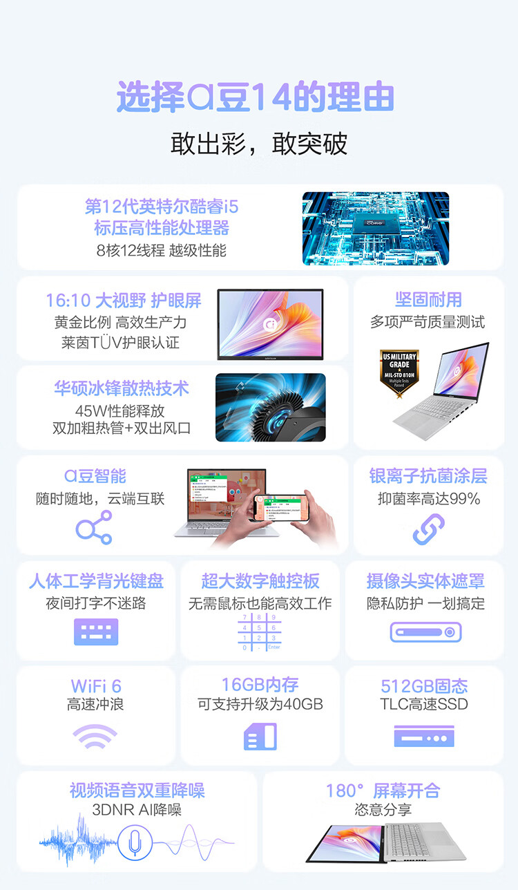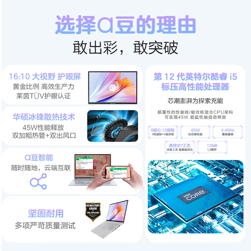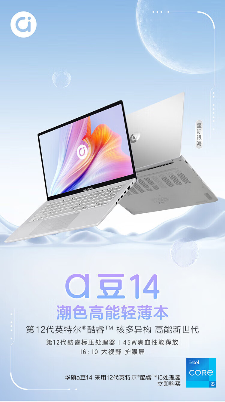 华硕笔记本电脑 a豆14 14英寸Pro级高性能轻薄本(12代标压i5 16G 512G 16:10大视野 护眼屏)商务办公学生 自营
