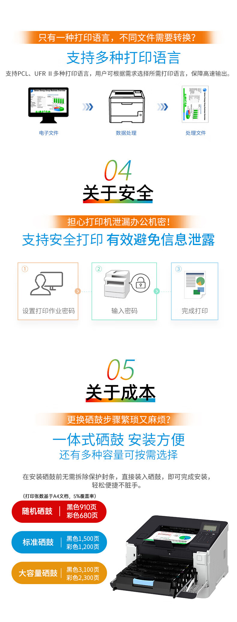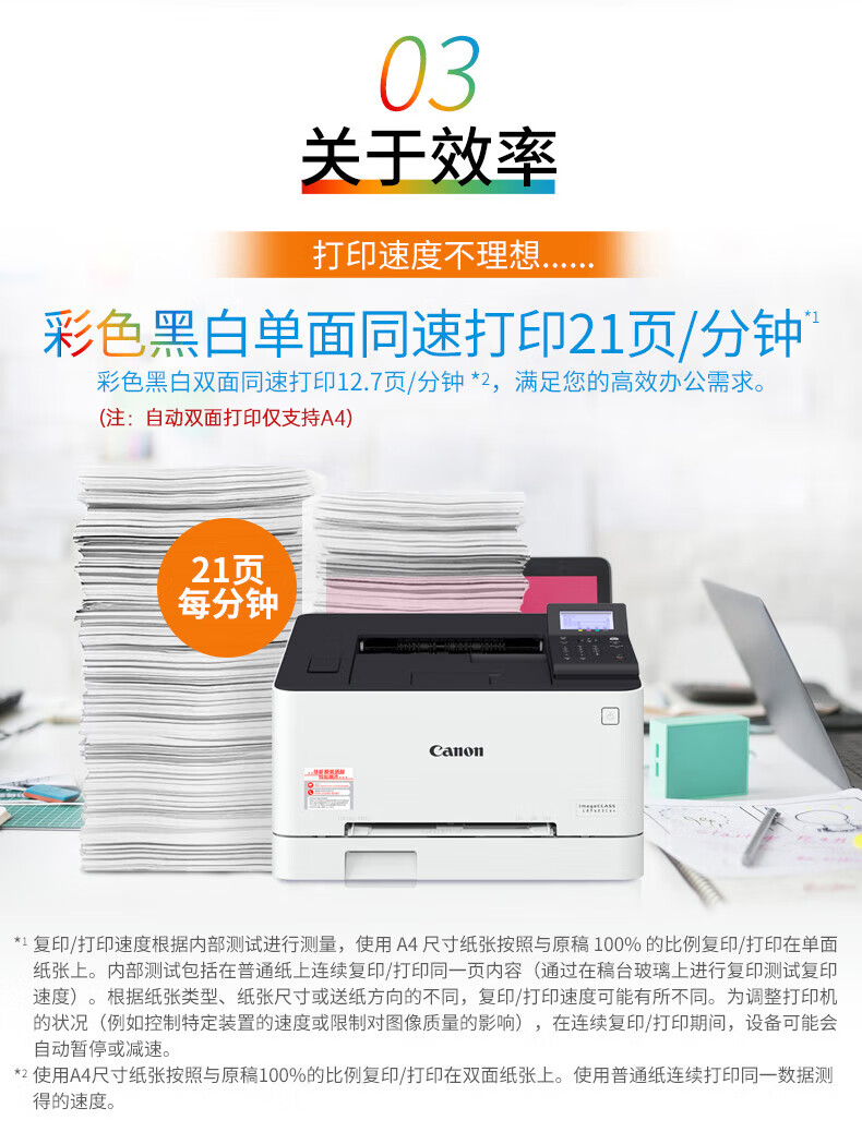 佳能(Canon) LBP623Cdn A4彩色激光单功能打印机(自动双面打印/大容量进纸 商用办公) 支持统信/麒麟系统 自营