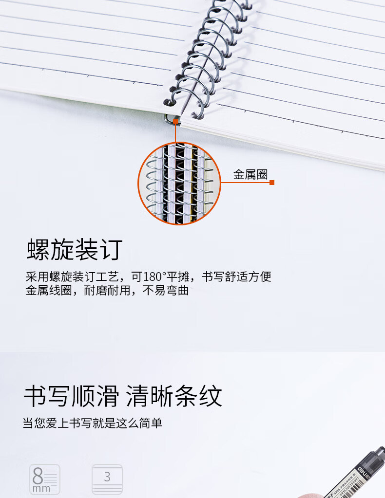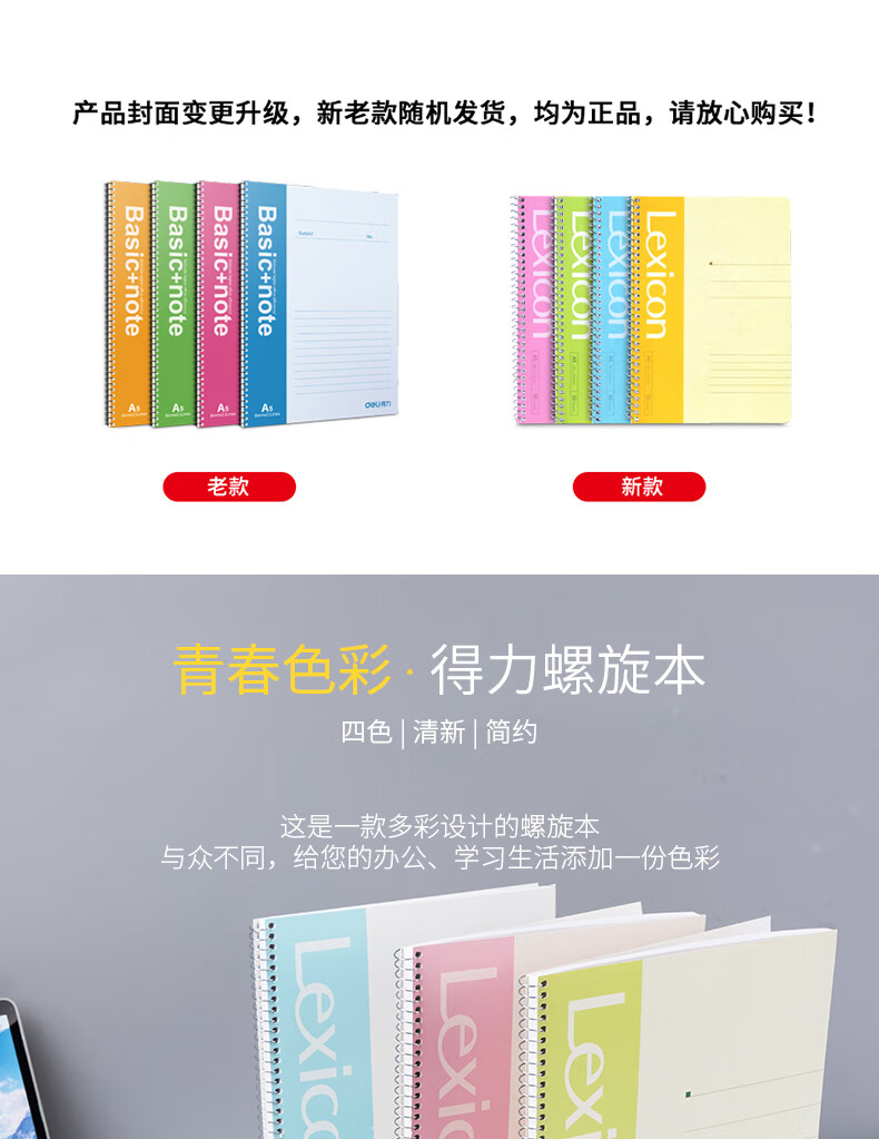 得力(deli) 6本/包 A4/80页螺旋装订本软抄本记事本笔记本子 7689-6 自营