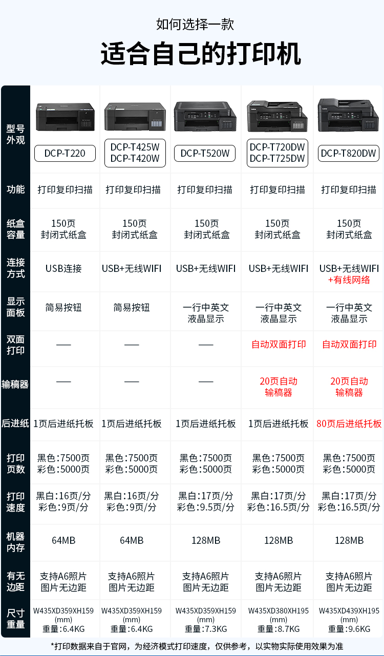 兄弟(brother)DCP-T725DW彩色喷墨多功能无线打印机学生家用办公自动输稿双面内置墨仓复印扫描 自营