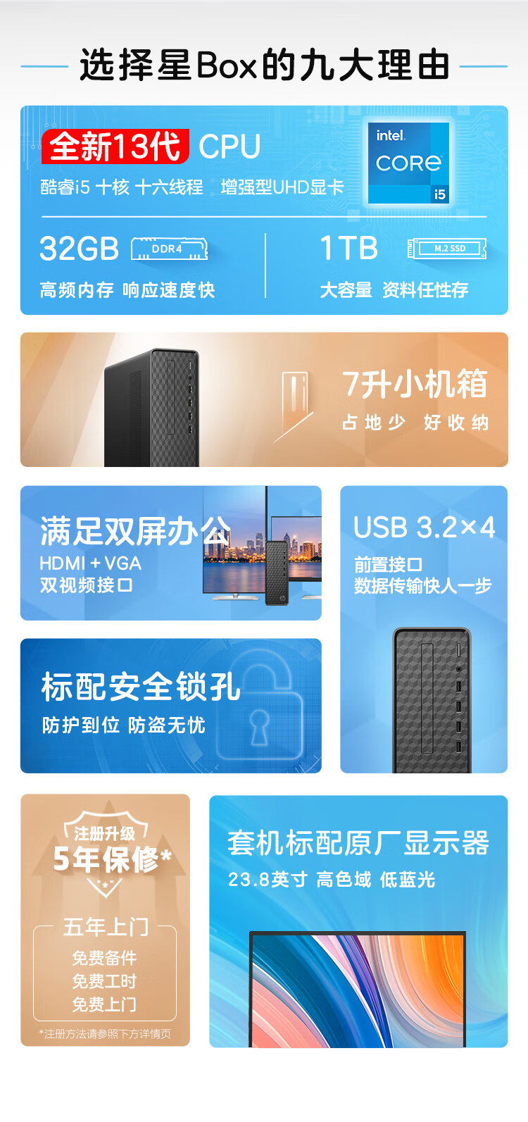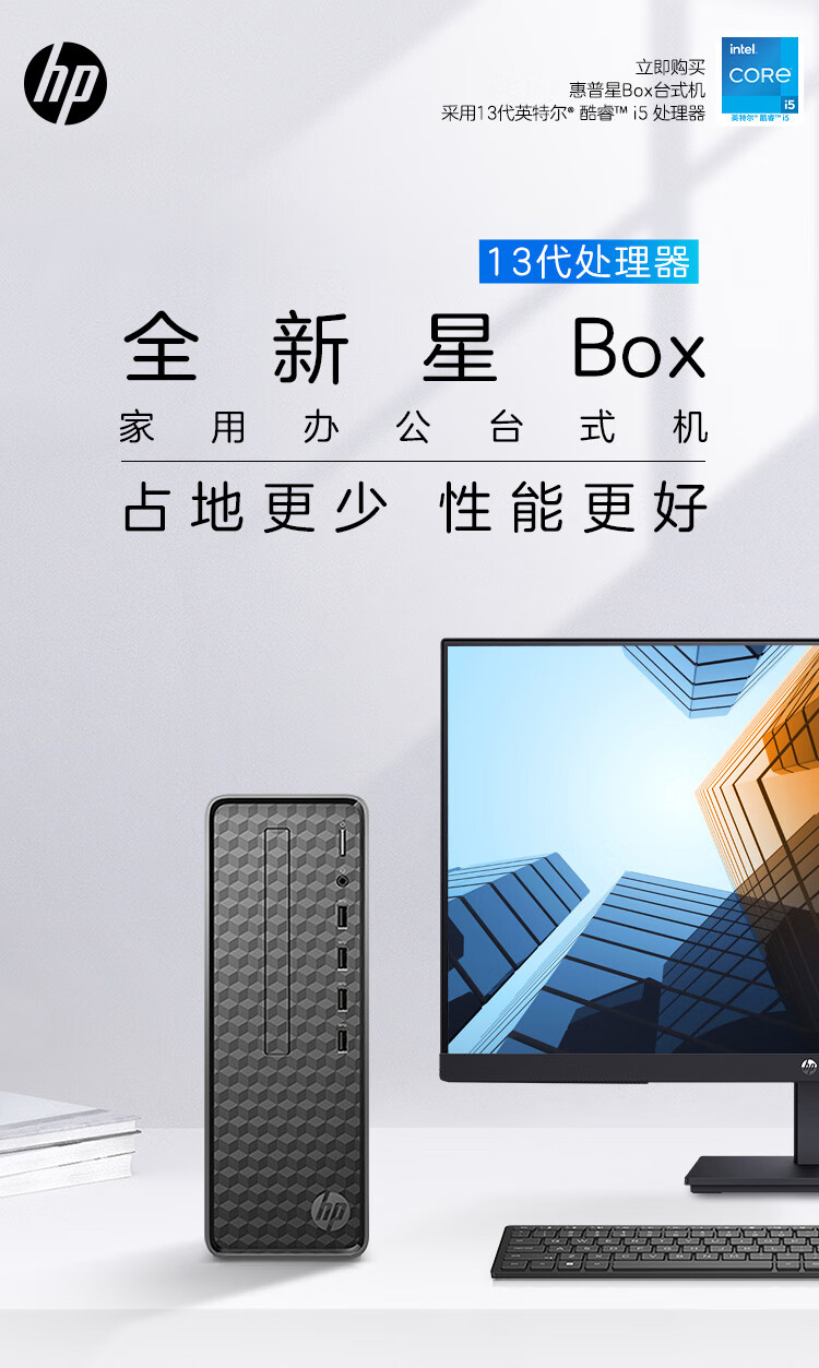 惠普HP 星Box商务办公台式电脑主机(13代i5-13400 32G 1TB大容量高速固态硬盘 WiFi )+23.8英寸 自营