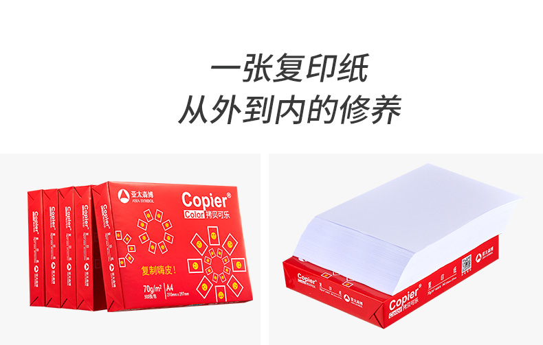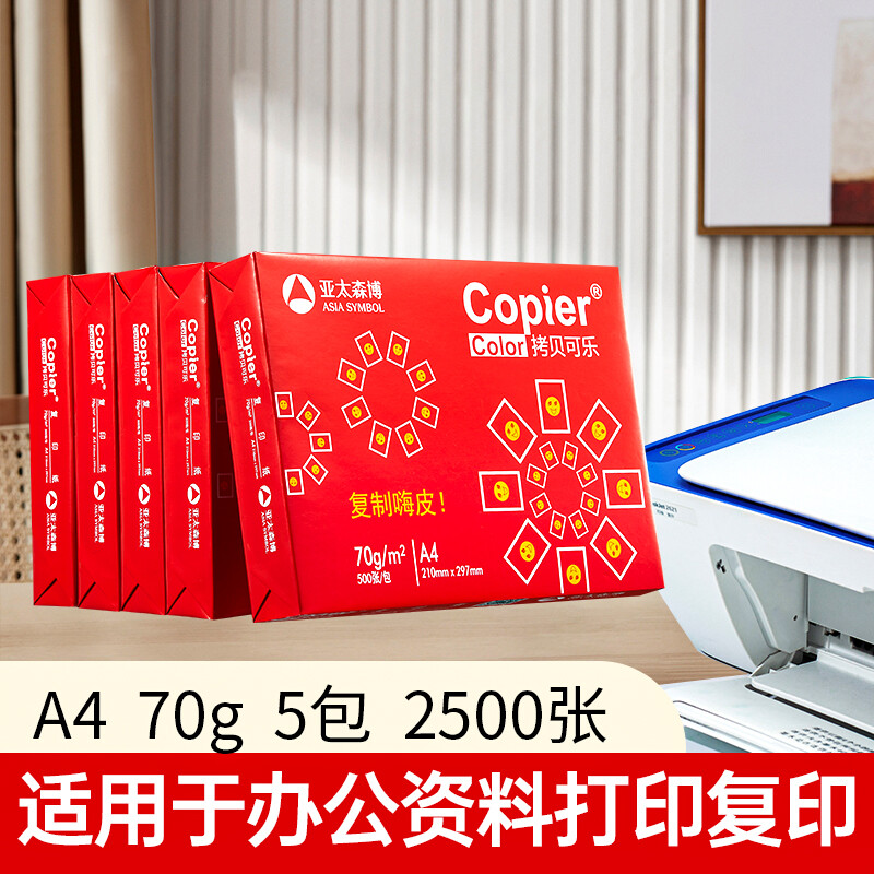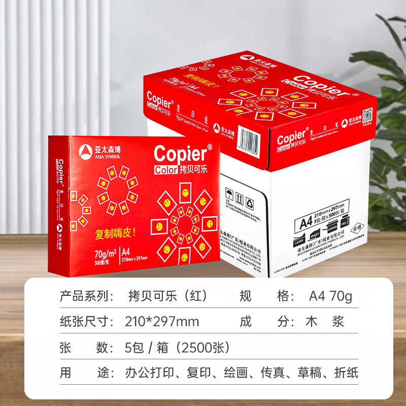 亚太森博百旺 红拷贝可乐A4纸 70g克 500*5包 双面打印不卡纸 多功能复印纸 2500张整箱【品质款】 自营