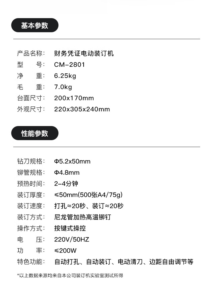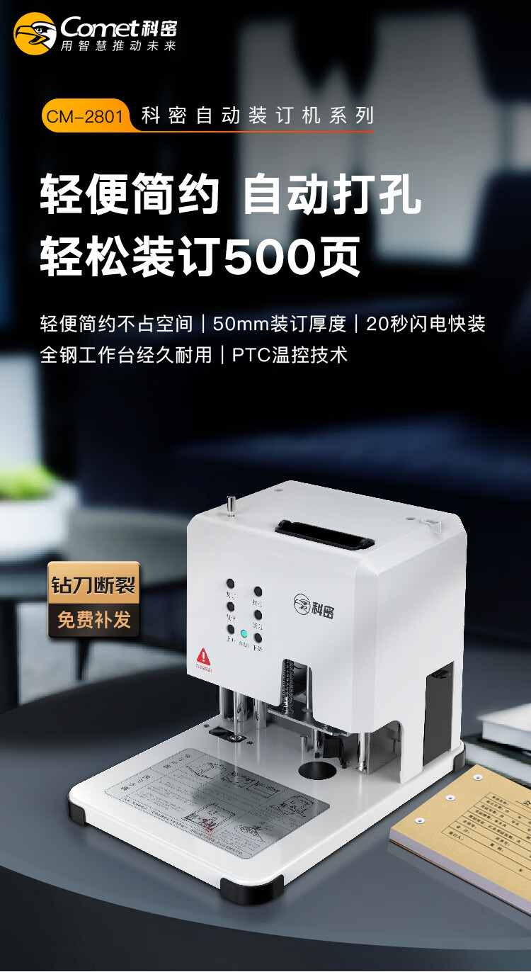 科密(comet)500页自动财务凭证装订机 文件档案打孔机 CM-2801 自营