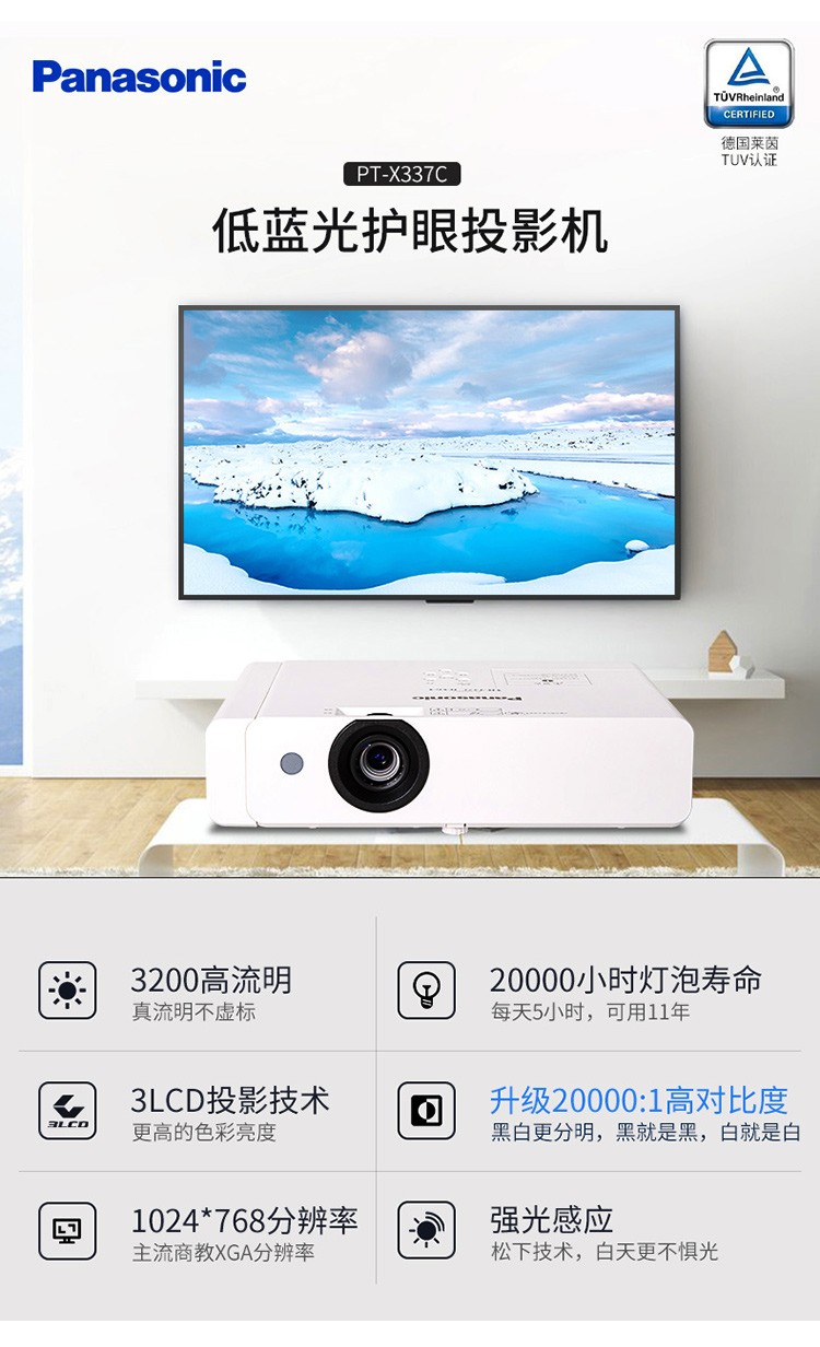 松下(Panasonic) PT-UX336C 投影机 投影仪办公教育(XGA分辨率 3200流明) 官方标配 自营
