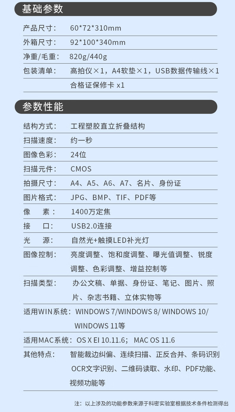 科密(comet) 高拍仪 1400万高清像素 可在线升级扫描仪 A4办公文件资料合同证件合成 OCR文字识别 GP-1000 自营