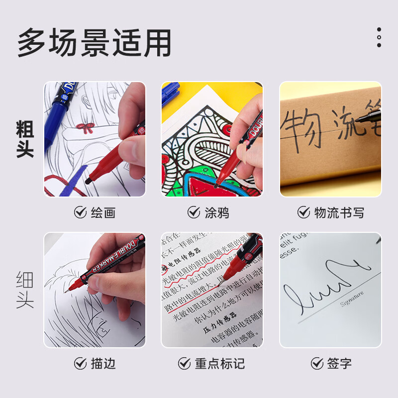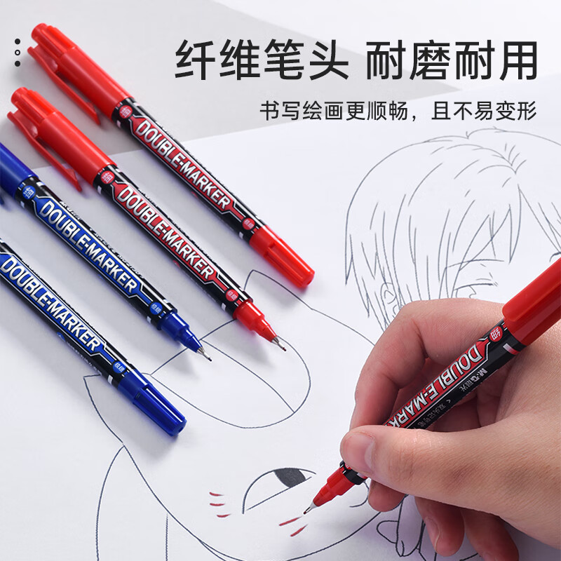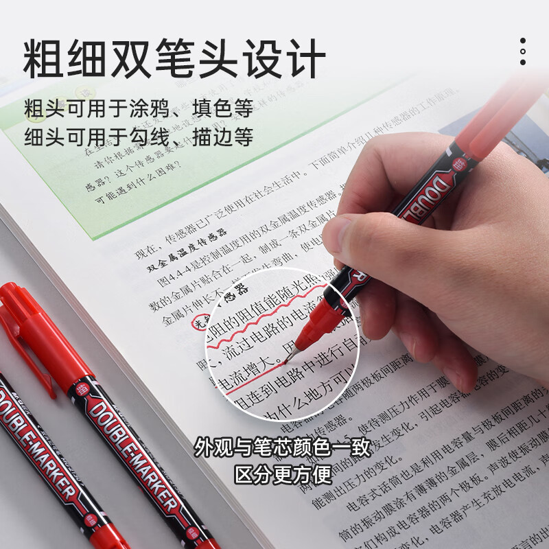 晨光(M&G)文具 红色双头细杆记号笔 学生勾线笔 学习重点标记笔 12支/盒 MG2130 红色 自营