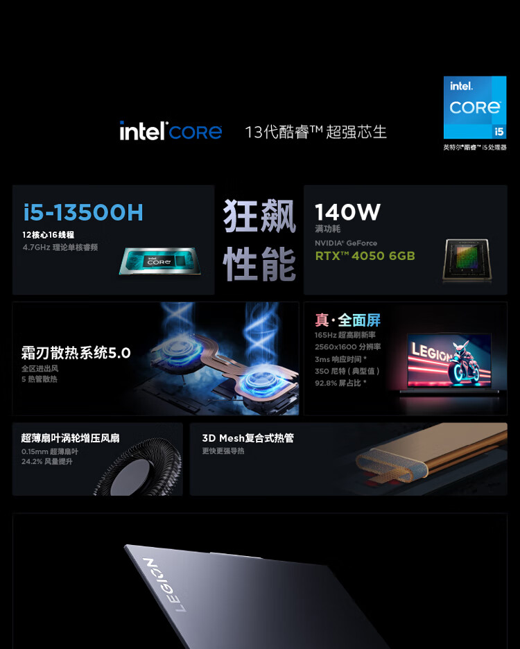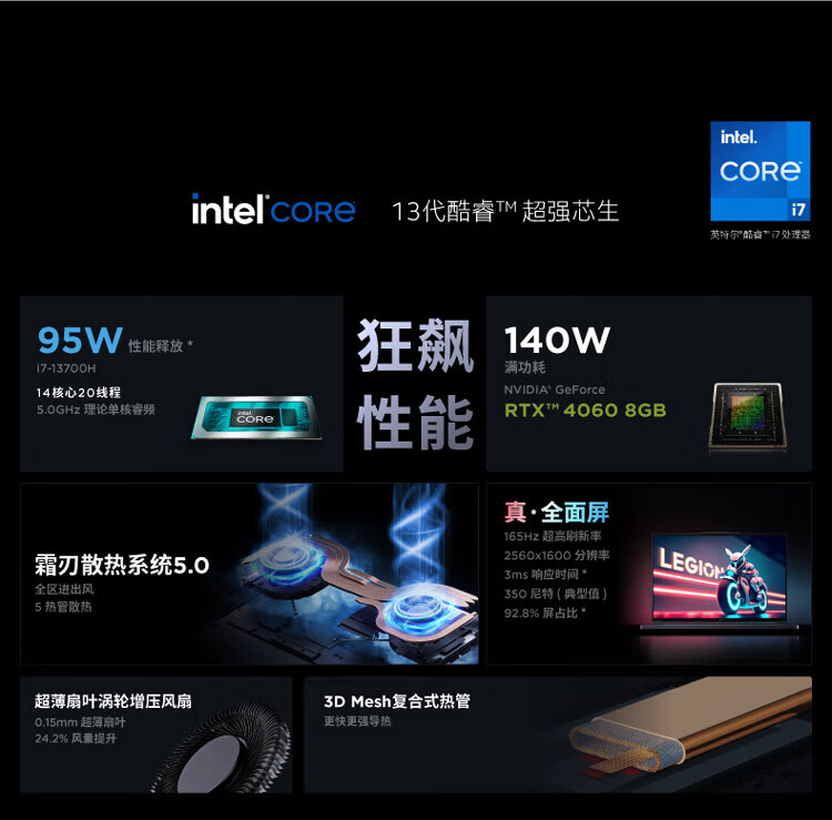 联想(Lenovo)拯救者Y7000P 13代英特尔酷睿 16英寸电竞游戏本笔记本电脑 i7-13620H 16G1T RTX4050 自营