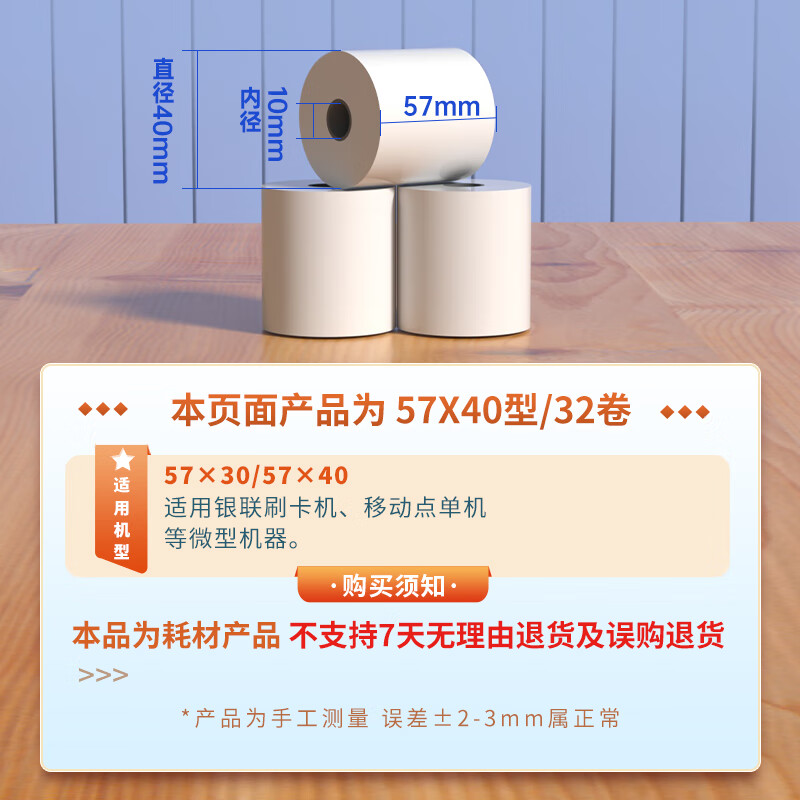 得力(deli)白令海热敏收银纸 57*40mm美团外卖po超市小票纸 32卷(12米/卷)收银机打印纸 单卷足米ZS120 自营