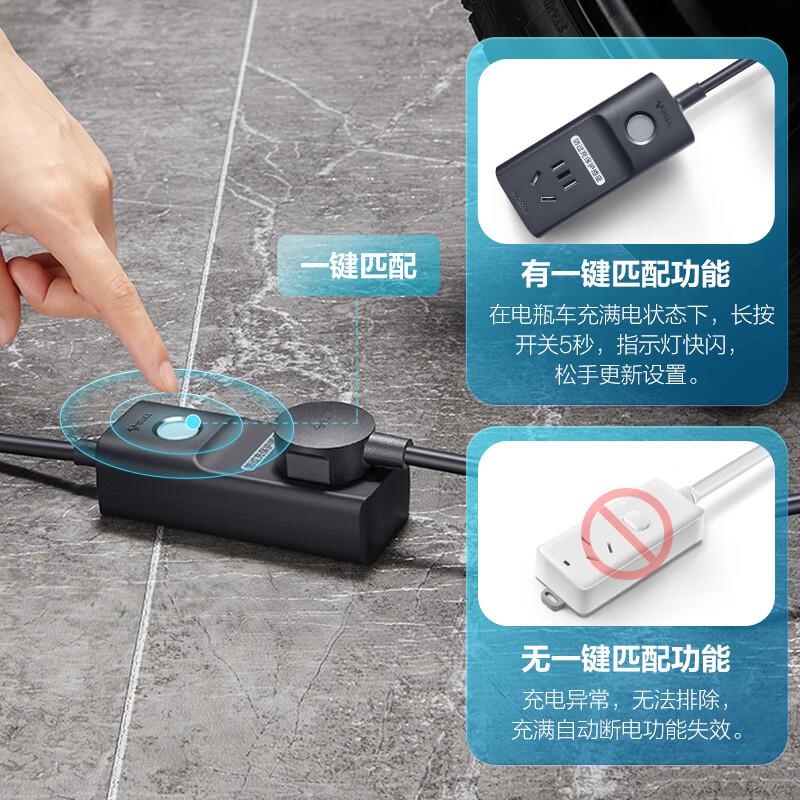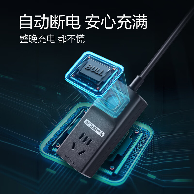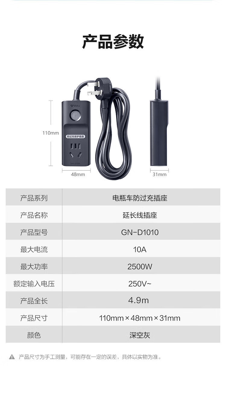 公牛(BULL)电动车充电保护器充满自动断电防过充插座/插线板/插排/排插/接线板 1位 GN-D1010 4.9米 自营