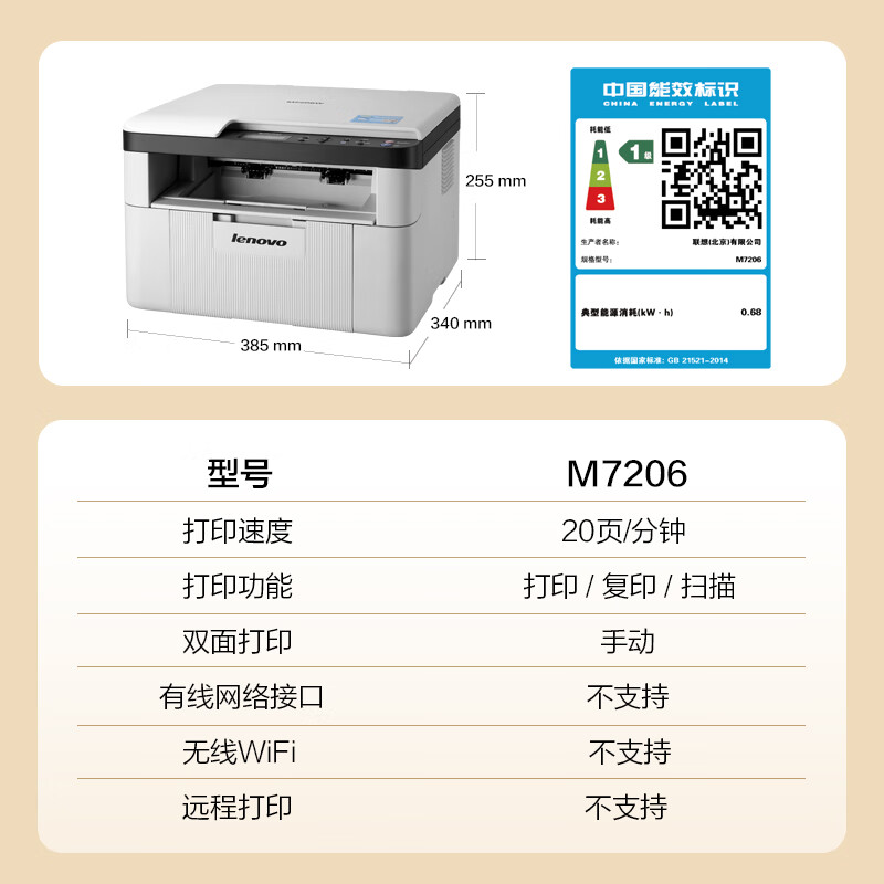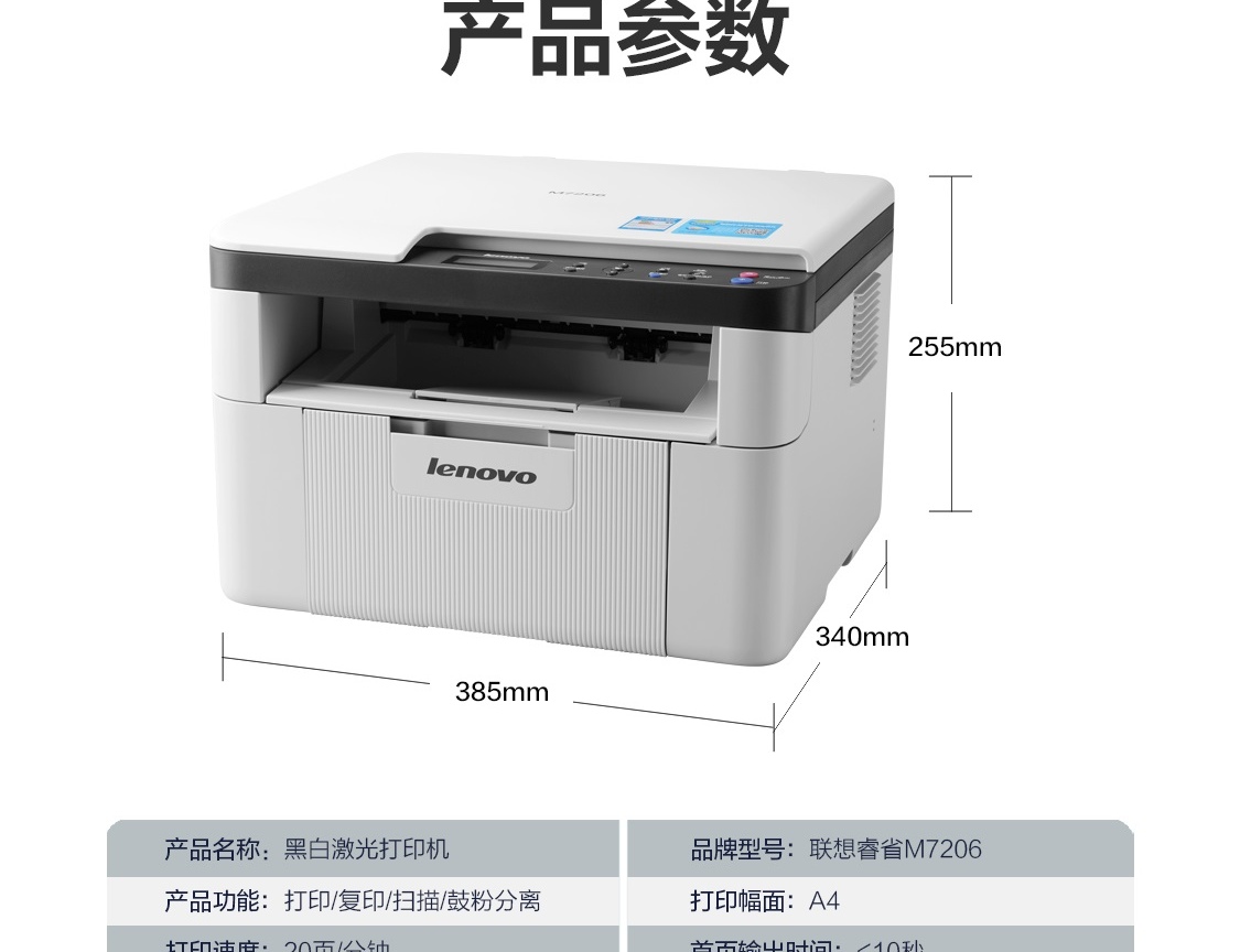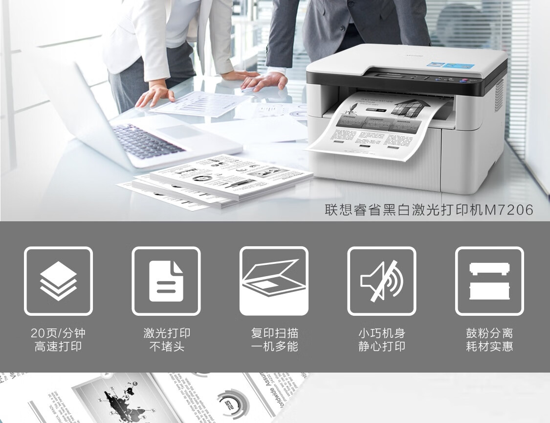 联想(Lenovo)M7206 黑白激光打印机 打印复印一体机 商用办公家用学习 学生作业打印机 自营
