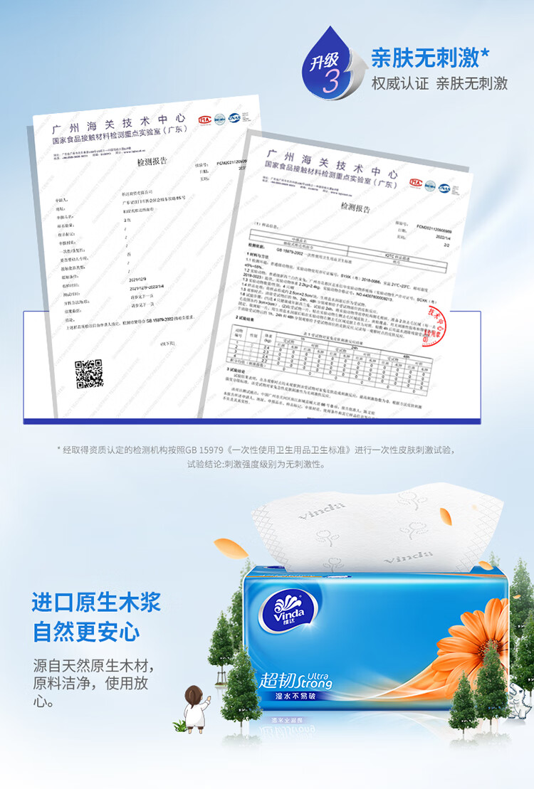 维达(Vinda)抽纸 超韧3层150抽*24包S码 湿水不易破 卫生纸 纸巾 餐巾纸 整箱 自营