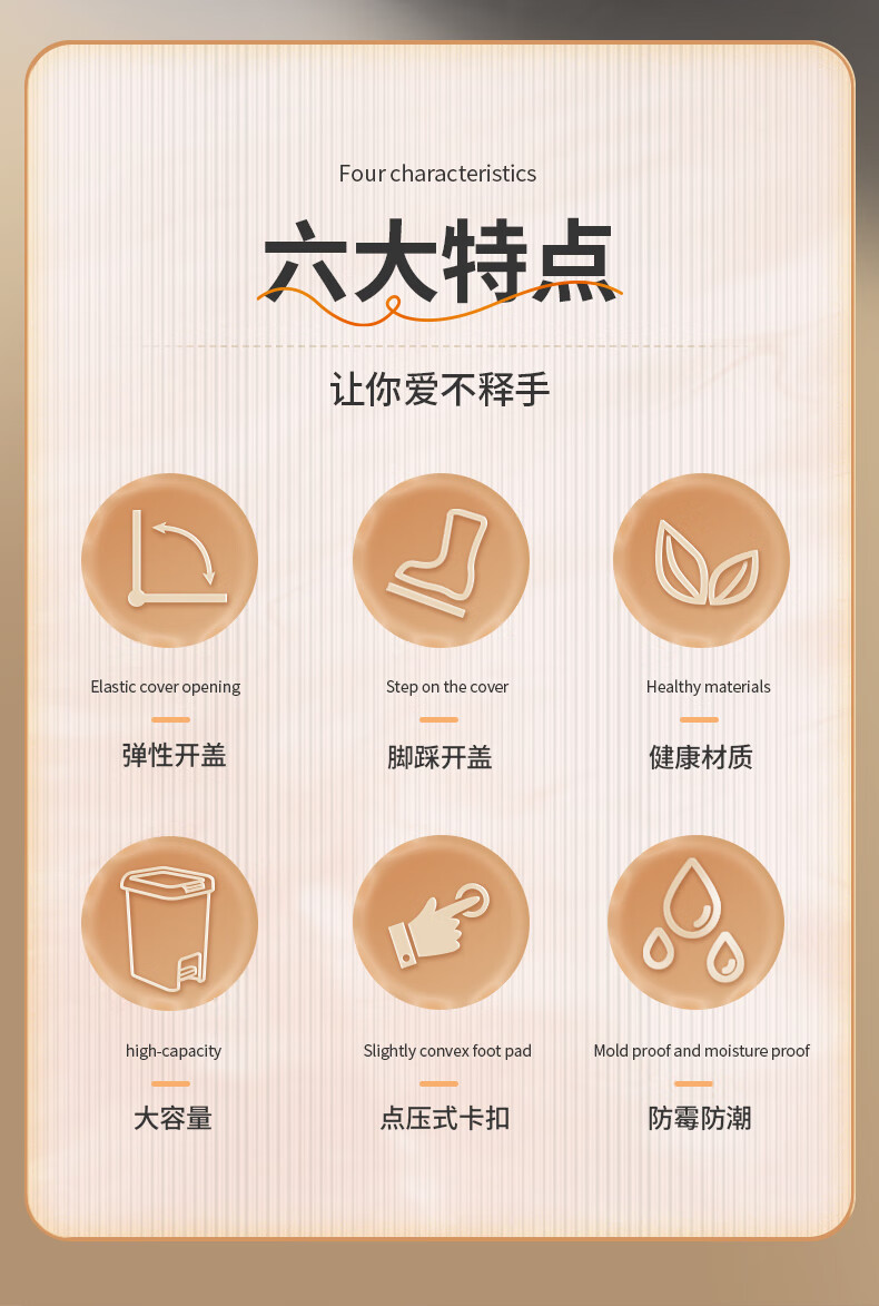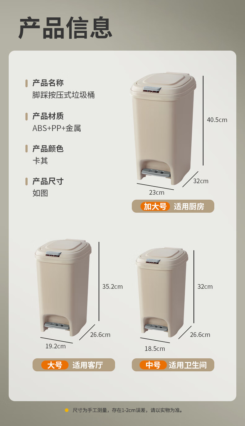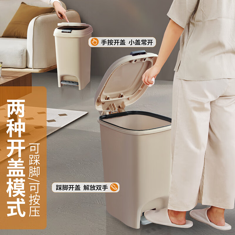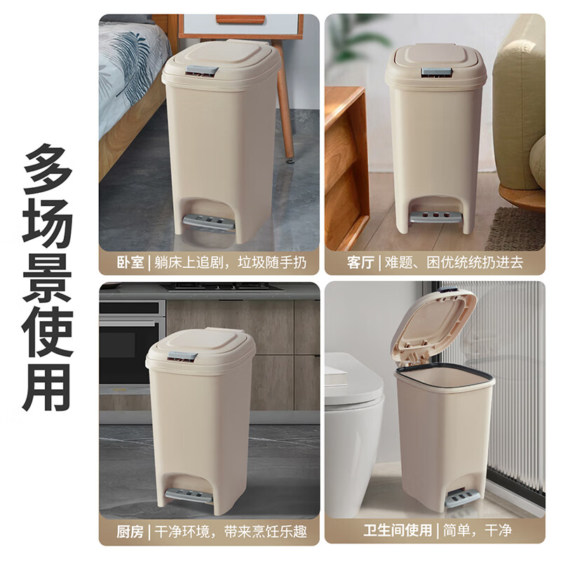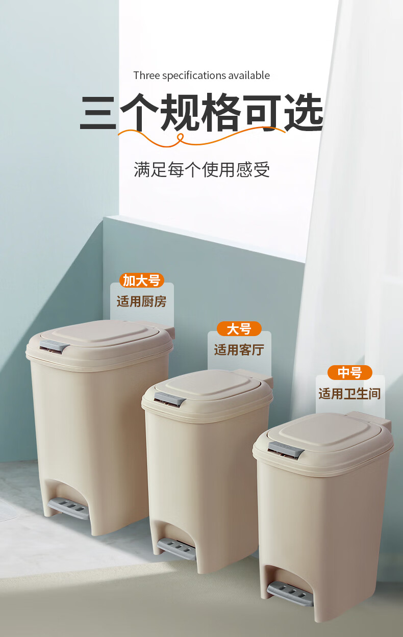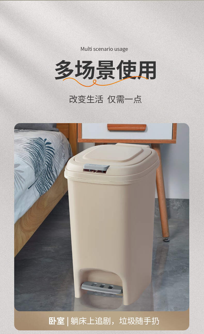 百家好世垃圾桶家用卫生间厕所厨房客厅带盖卧室大容量商用脚踏式轻奢纸篓 自营