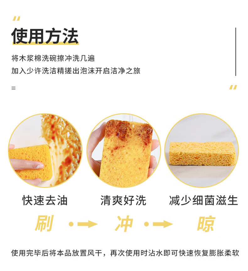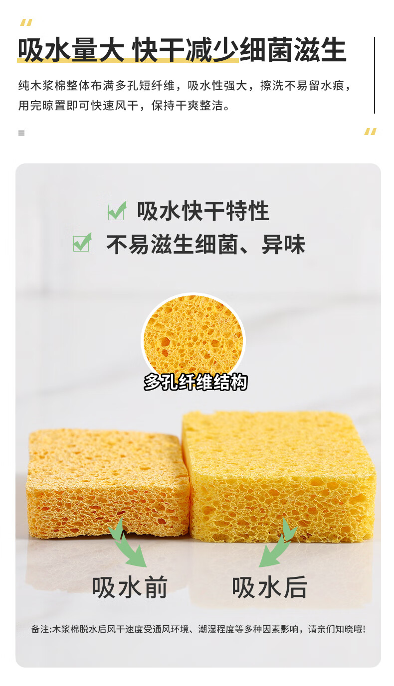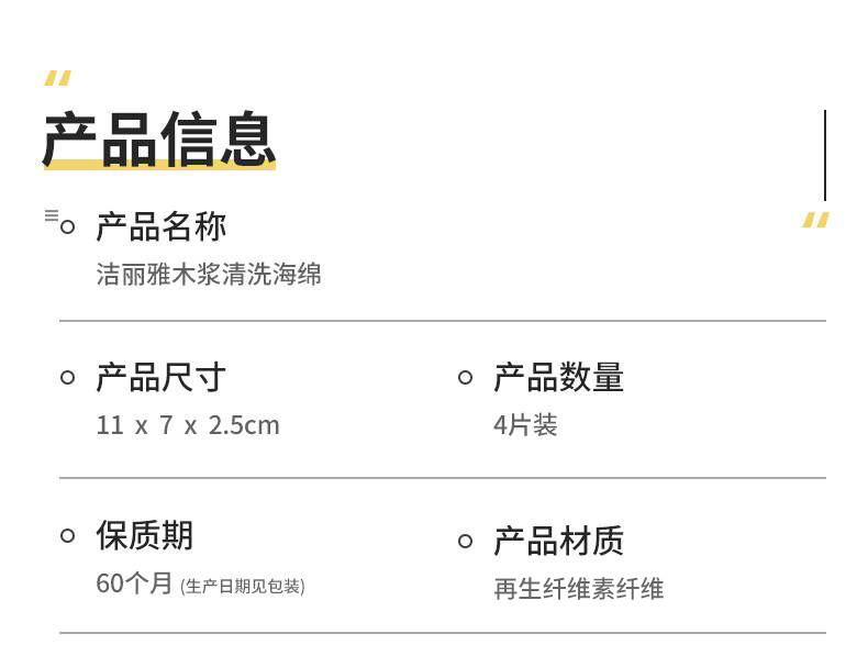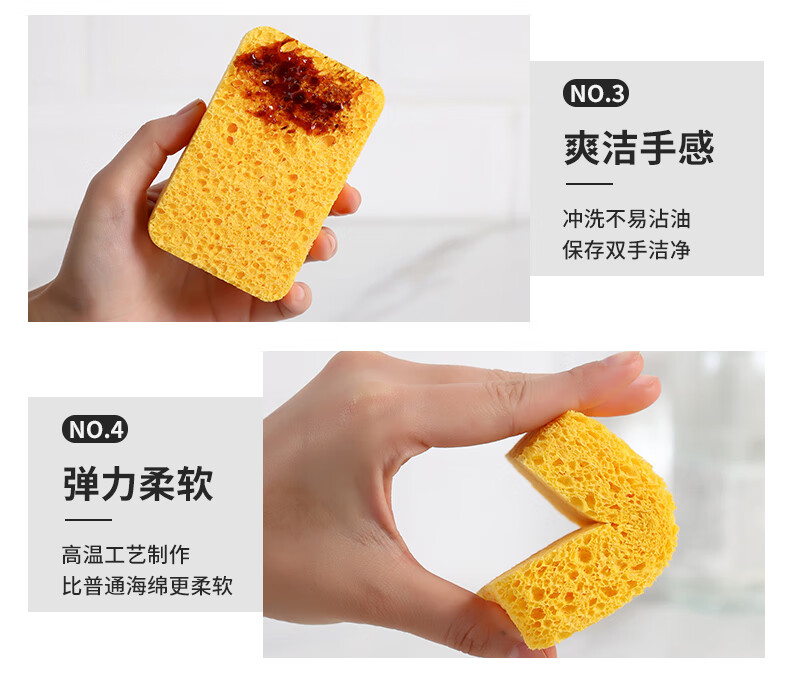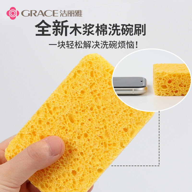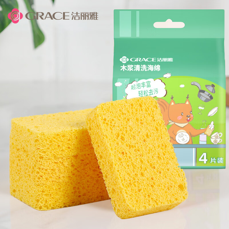 洁丽雅(Grace) 天然木浆棉洗碗棉4片装 厨房抹布百洁布洗碗海绵擦去油污 自营