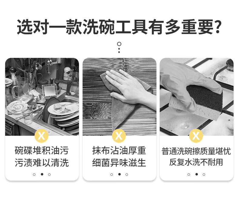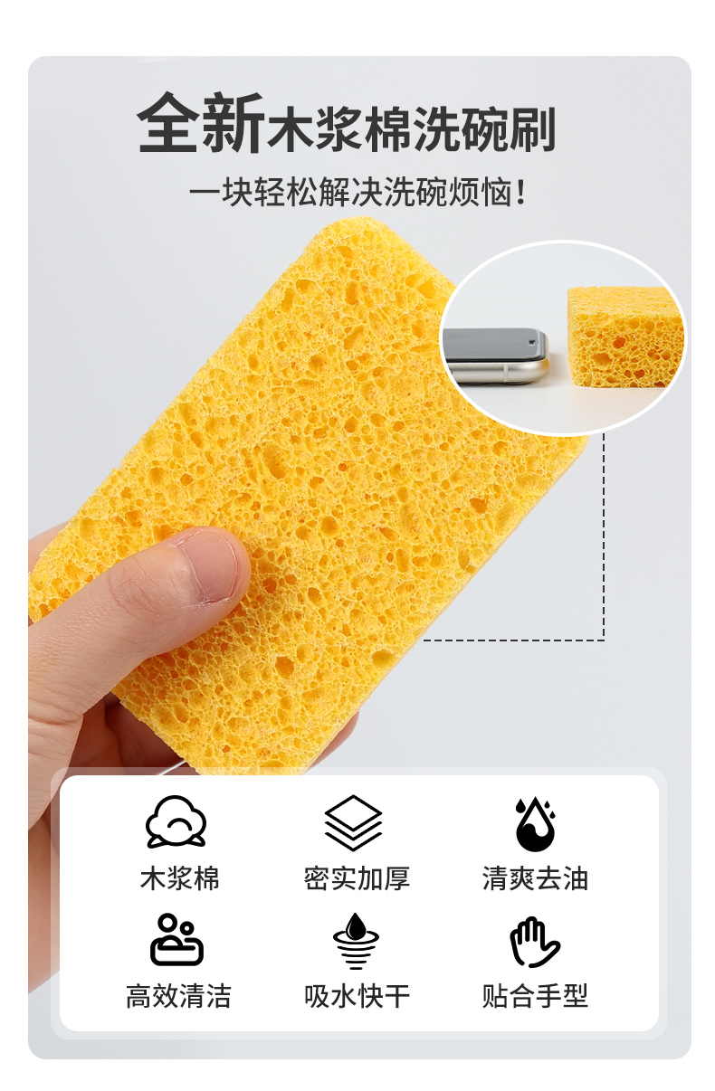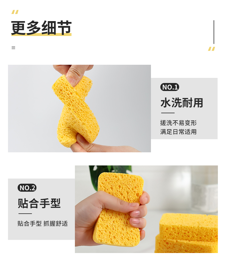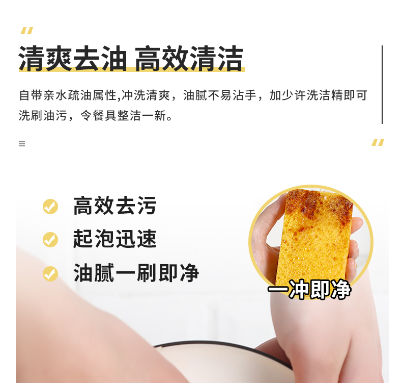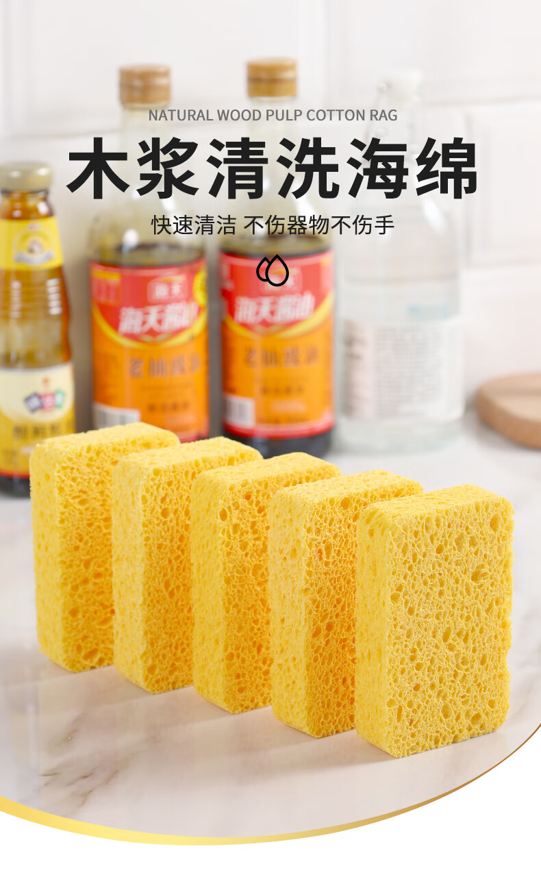 洁丽雅(Grace) 天然木浆棉洗碗棉4片装 厨房抹布百洁布洗碗海绵擦去油污 自营