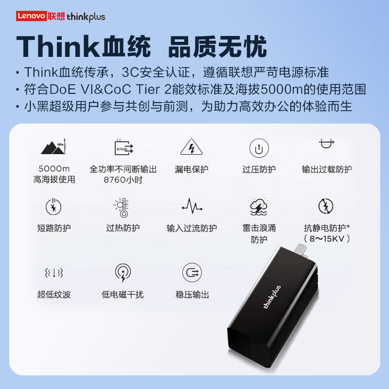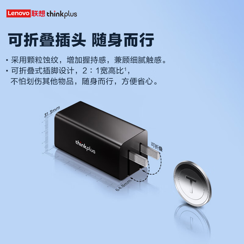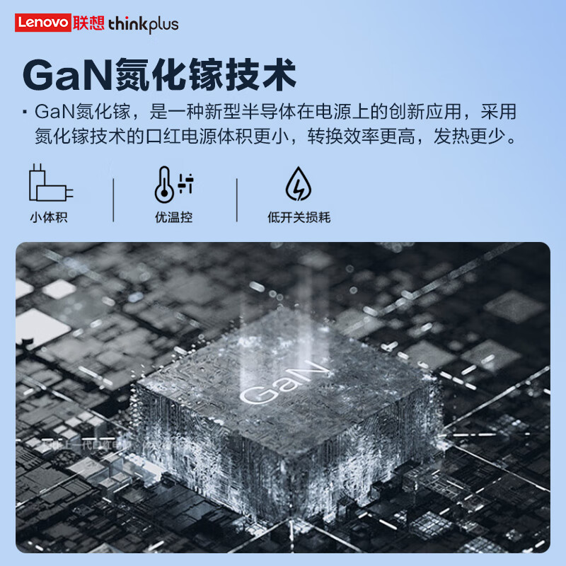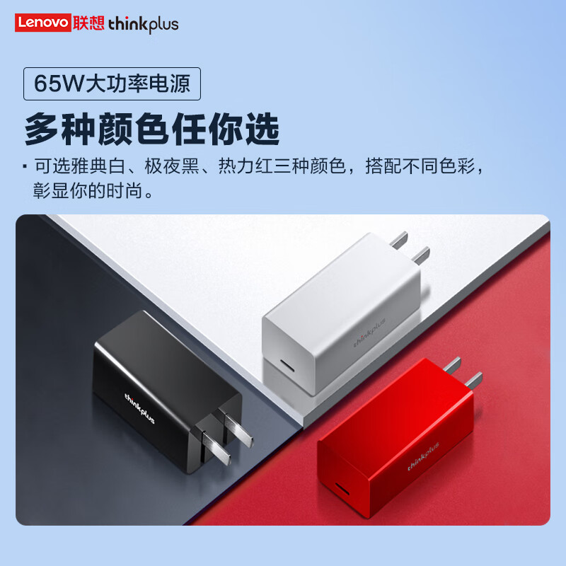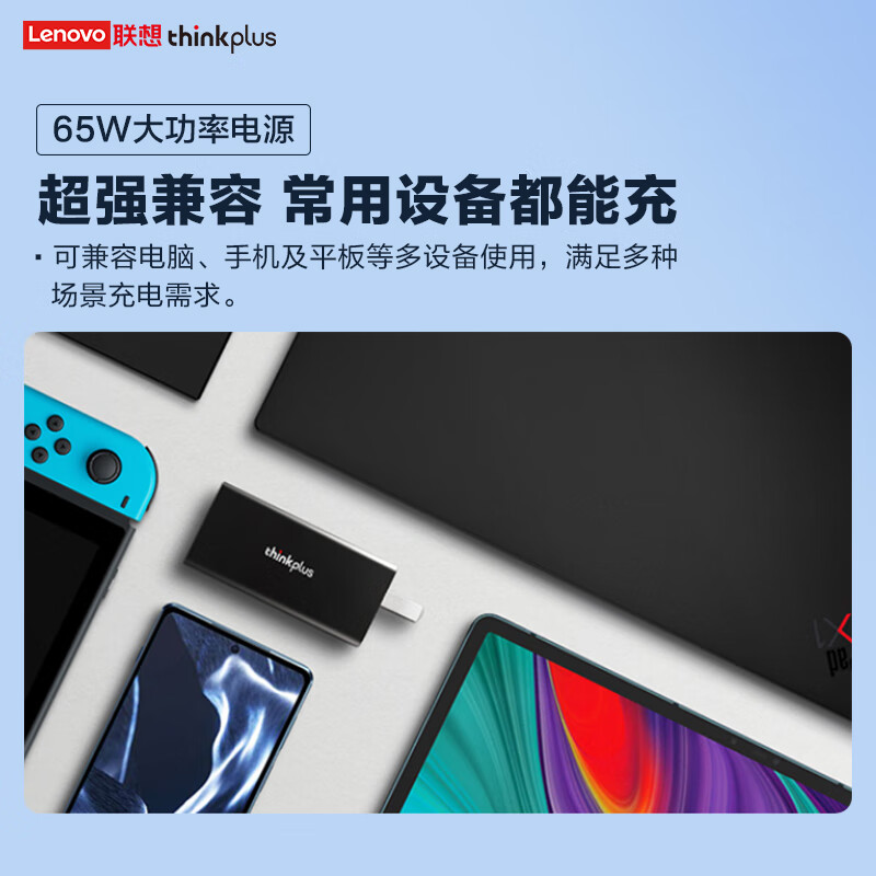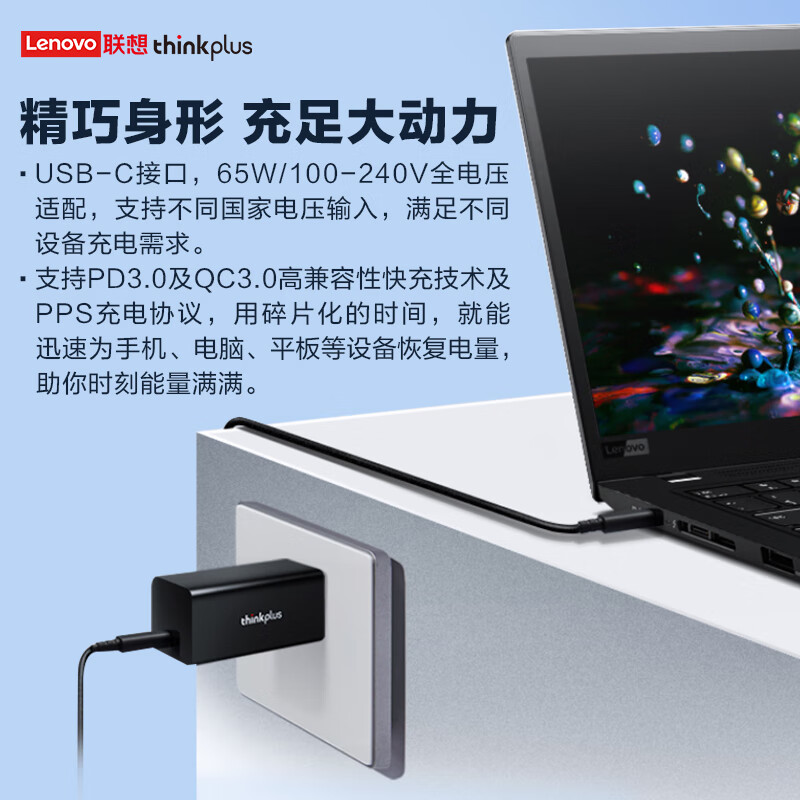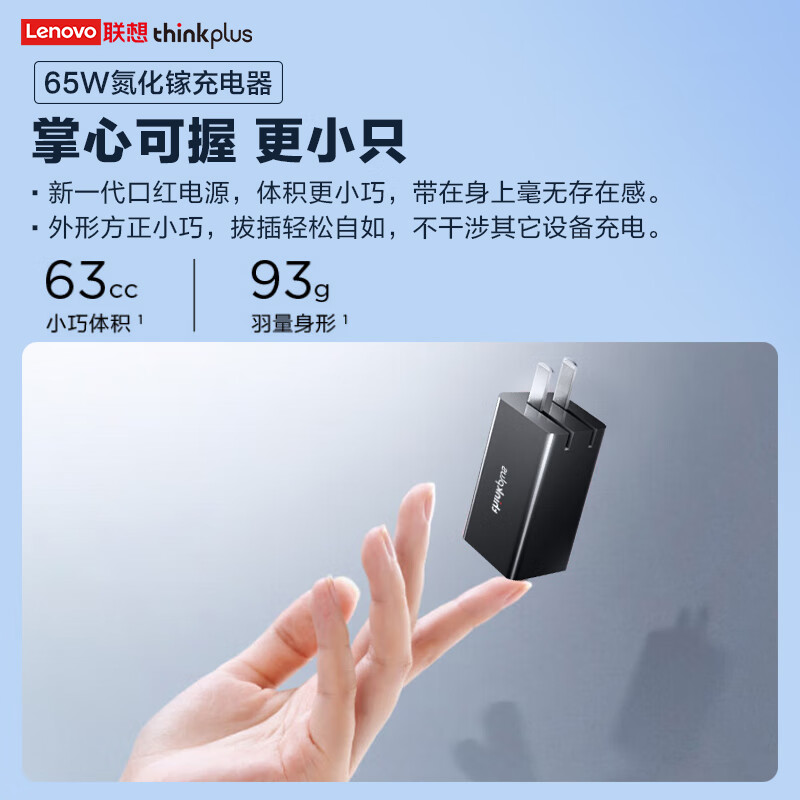 ThinkPlus联想口红电源65W氮化镓充电器Type-C PD快充套装 ThinkPad笔记本适配器 电脑/手机/平板通用4239 自营