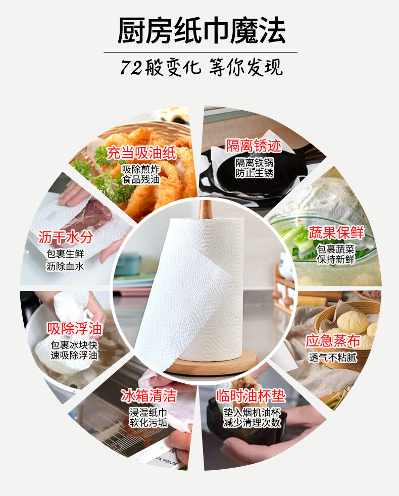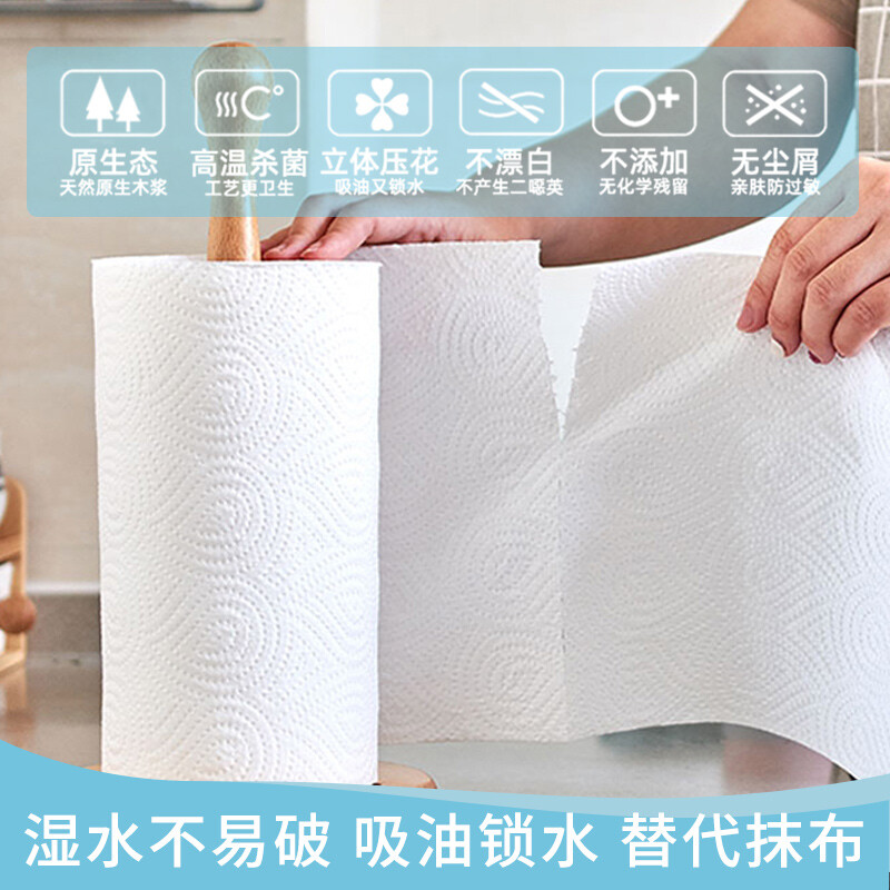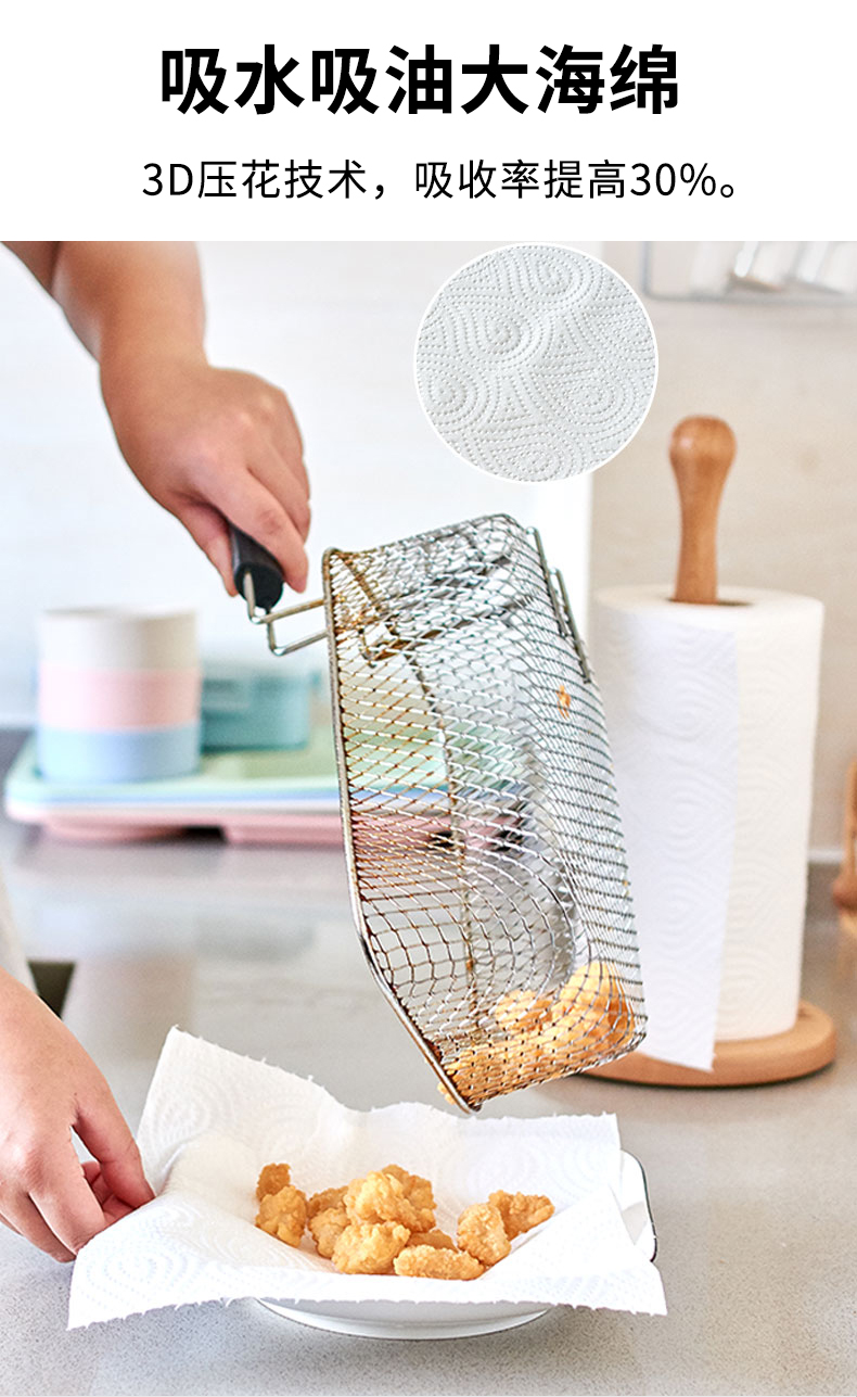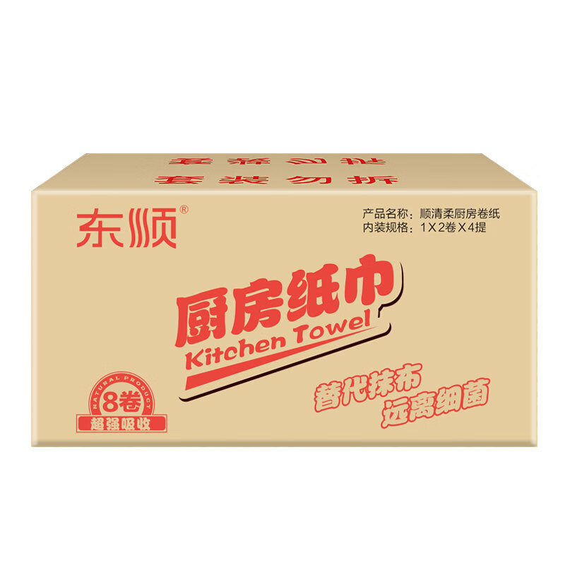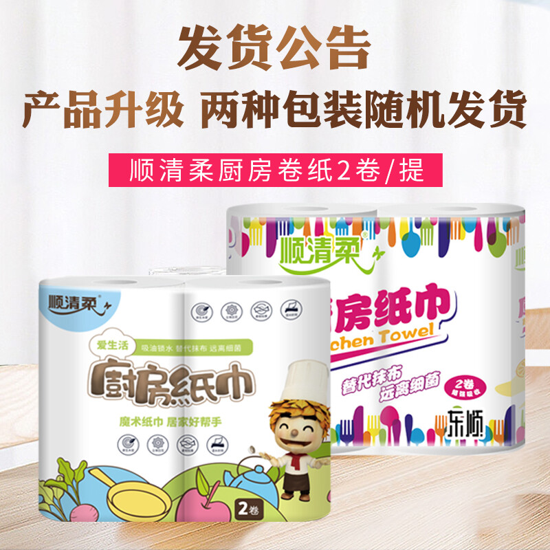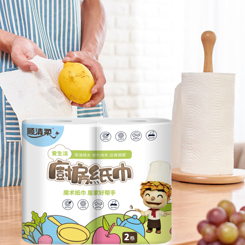 顺清柔厨房纸卷纸 加厚吸油吸水2层200g*8卷(整箱销售) 自营