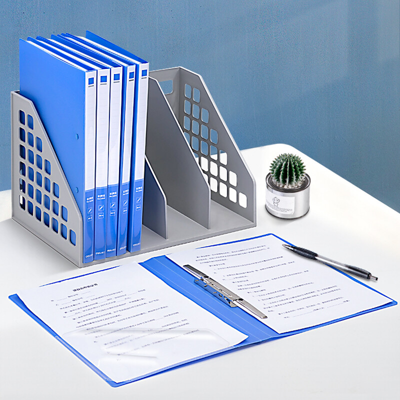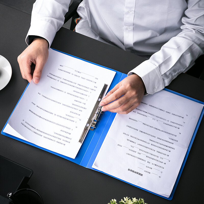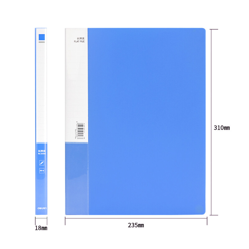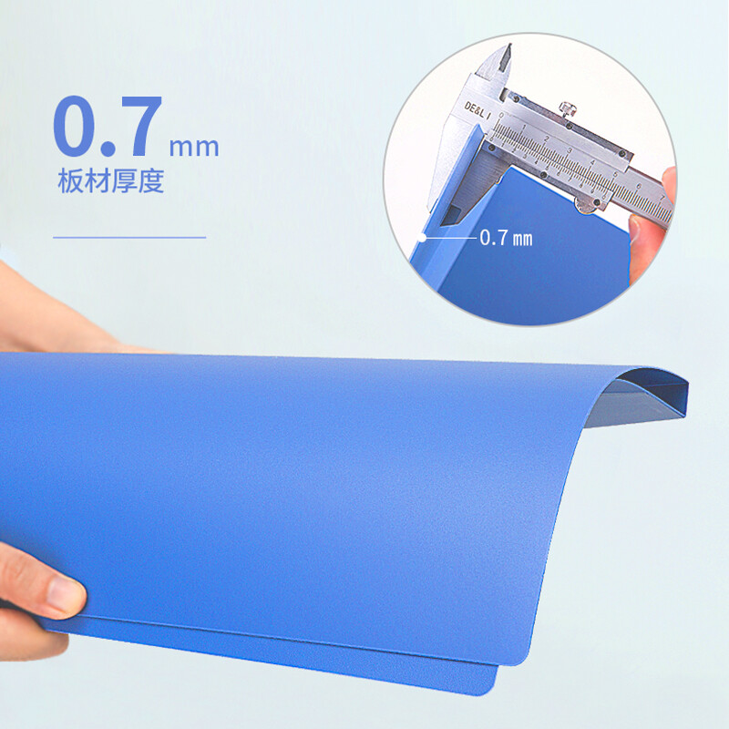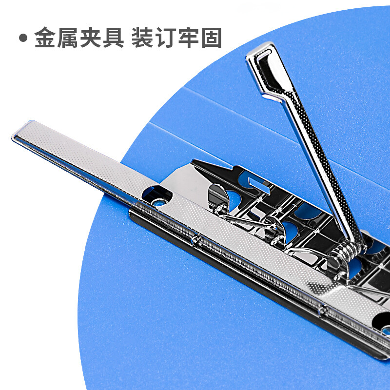得力(deli)A4金属长押夹+插页袋硬文件夹 大容量试卷资料夹诗朗诵签约夹板 5308蓝色 自营