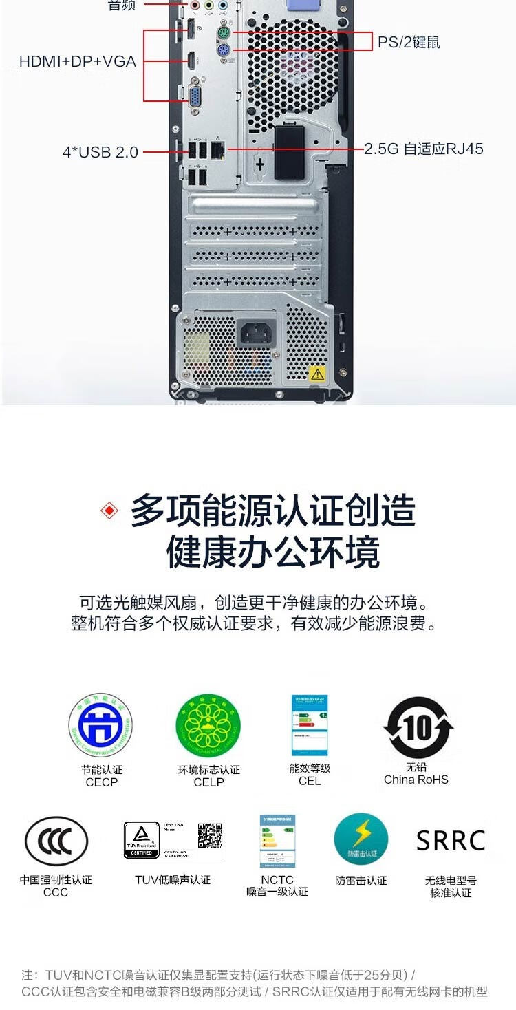 联想(Lenovo) 启天M650 12代i5-12500处理器 商用办公台式机电脑 主机+27英寸高清显示器 定制i5-12500 16G 1T+256G固态 自营