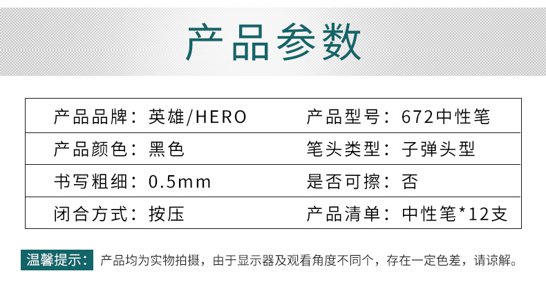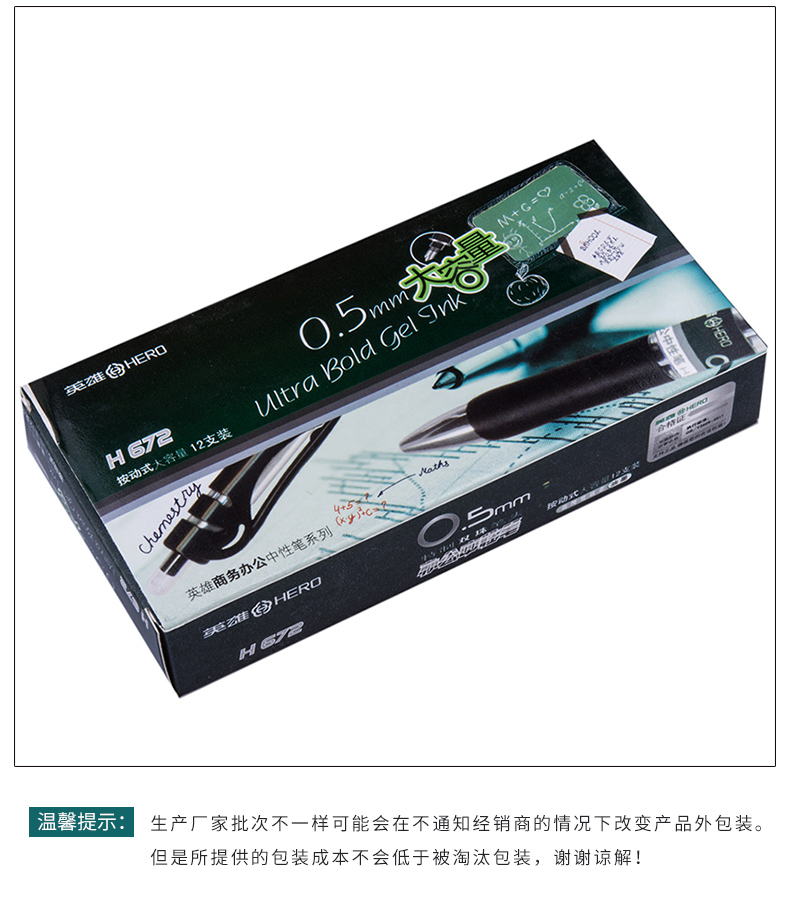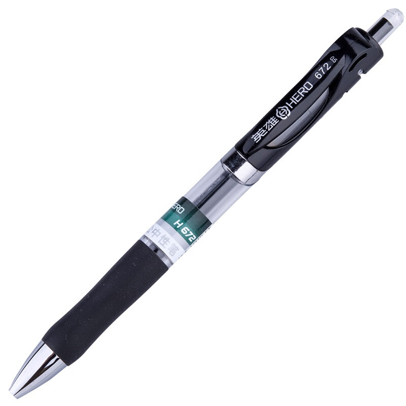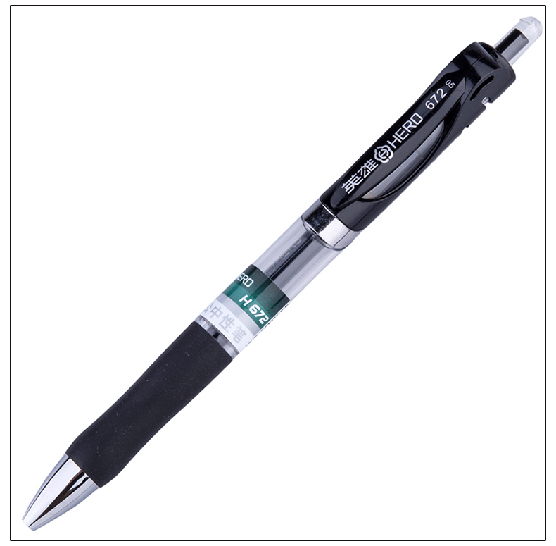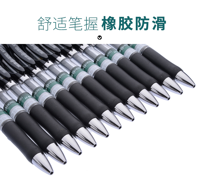 英雄(HERO)中性笔672黑色按动式大容量商务中性笔 签字笔 水笔学生[12支装] 自营