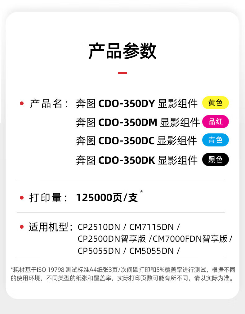 奔图(PANTUM)CDO-350DK/C/M/Y显影组件套裝适用CP2510DN CM7115DN 5055DN影仓CP2500DN智享版CM7000FDN智享版 自营