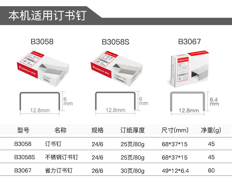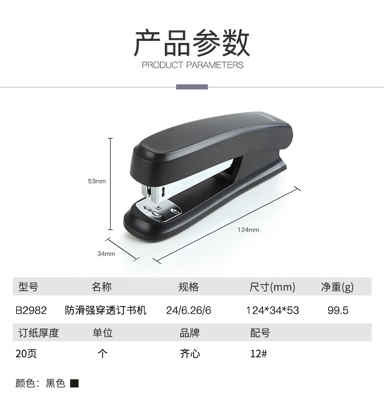 齐心(Comix)耐用型订书机/订书器 12# 黑 B2982 自营