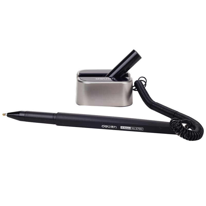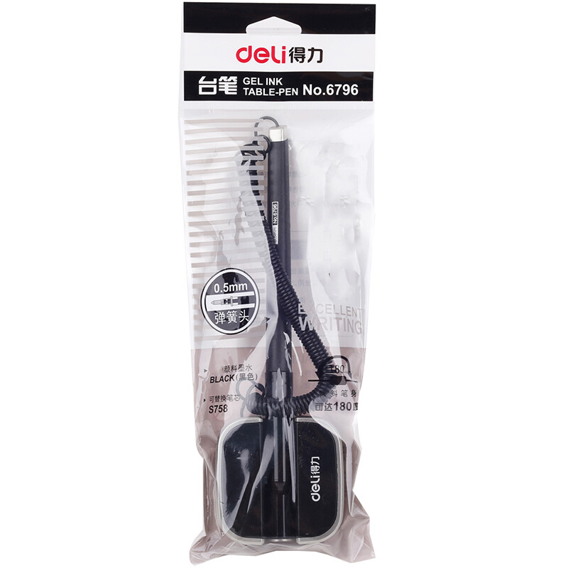 得力(deli)0.5mm商务办公桌面台笔签字笔 可粘贴台式中性笔单支 6796灰 自营