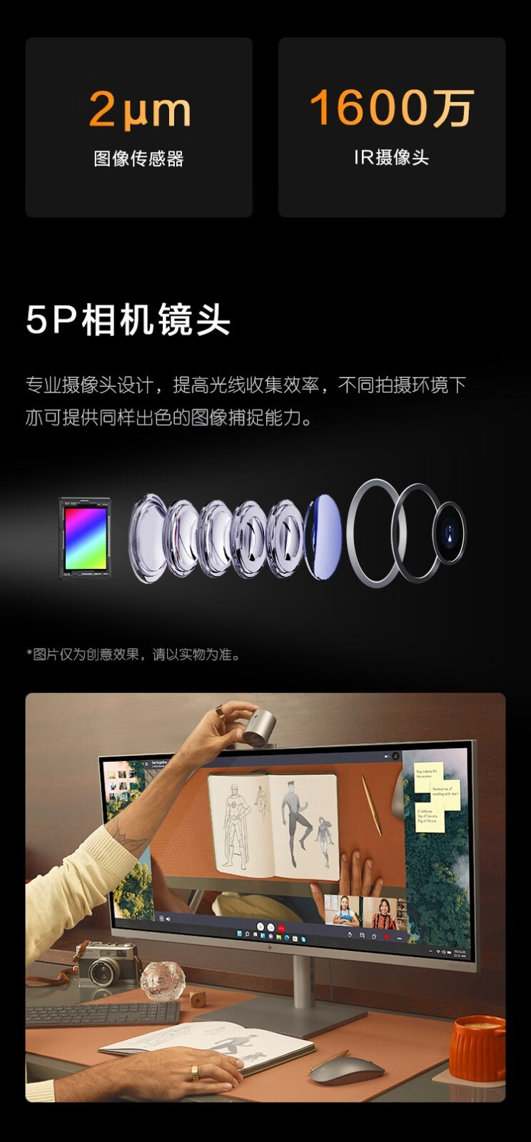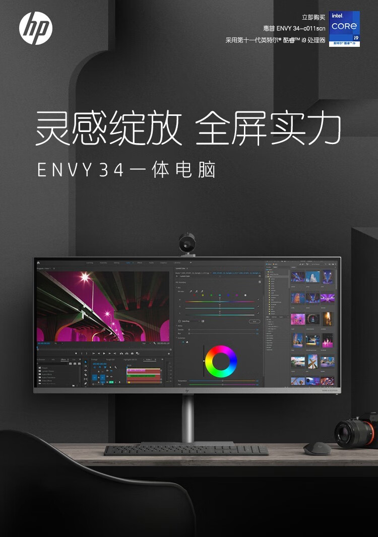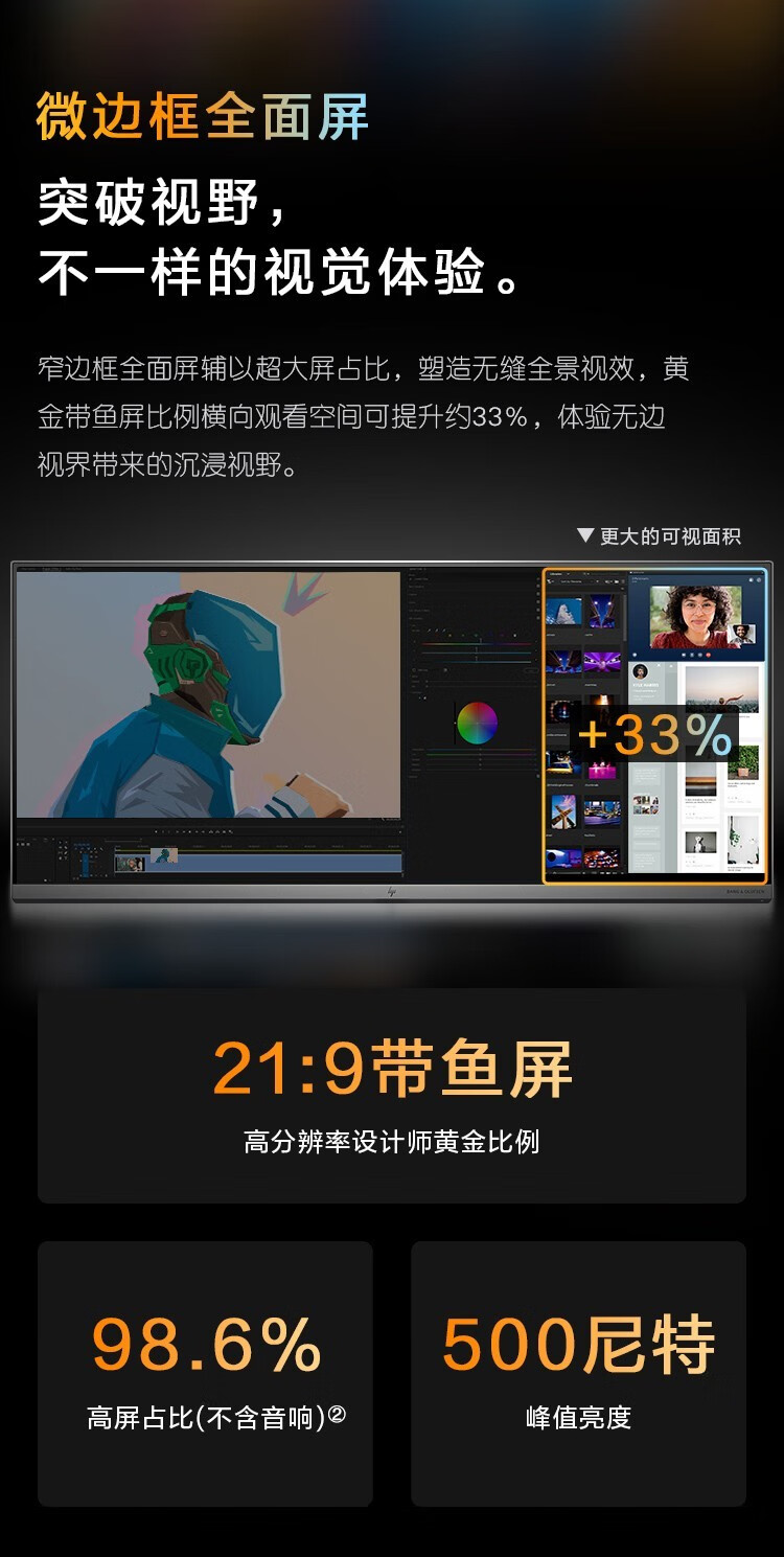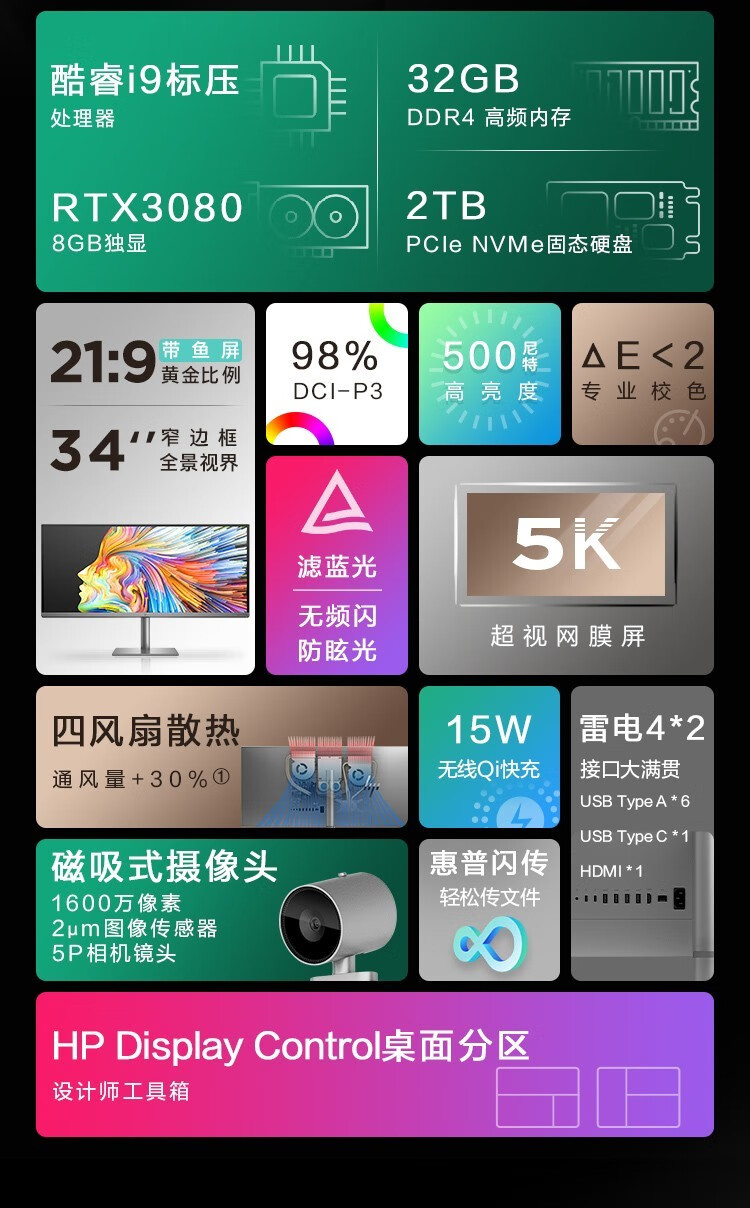 惠普(HP) ENVY34设计师 5K 21:9带鱼屏 34英寸窄边框一体机电脑 设计绘图游戏一体机 新i9-12900H RTX3080 8G 32G内存 2TB固态官方标配 自营