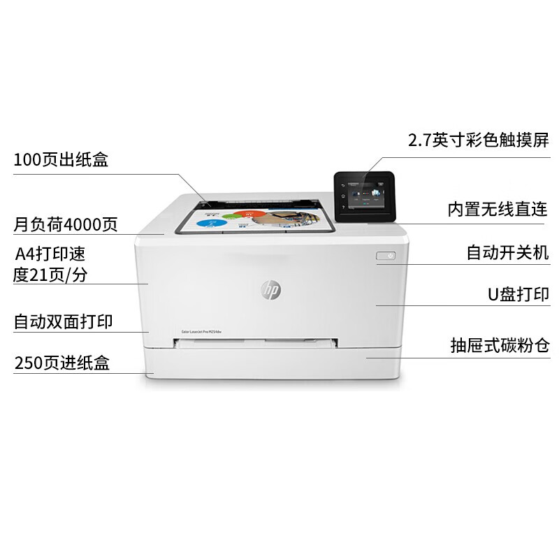 惠普(HP) 打印机办公 A4彩色激光 单功能打印 M254dw标配(双面/无线/有线连接) 自营