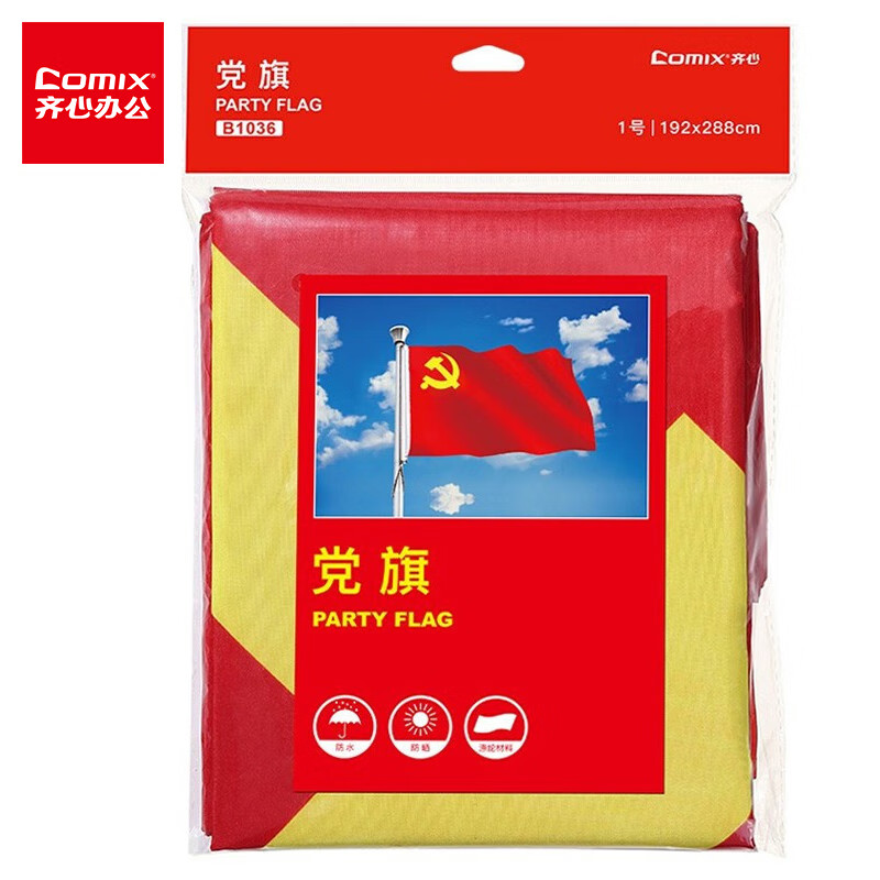 齐心(Comix) 中国党旗涤纶疏水面料室内户外 一号党旗1号 (192*288CM) 中国红 B1036 自营