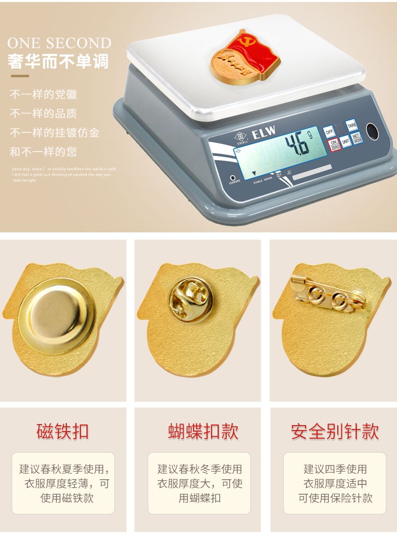 齐心(COMIX) 党徽 磁铁蝴蝶扣党徽 胸章别针 党员胸章 安全针磁铁党徽 徽章 安全别针款 自营