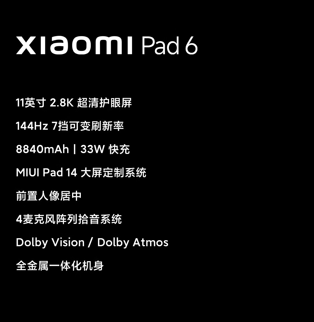 ¥6199.00小米平板6(xiaomiPad)11英寸 骁龙870 144Hz高刷护眼 2.8K超清 8+128GB 会议笔记 移动办公娱乐平板电脑 黑色