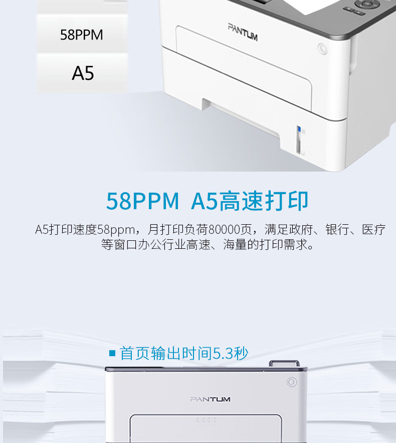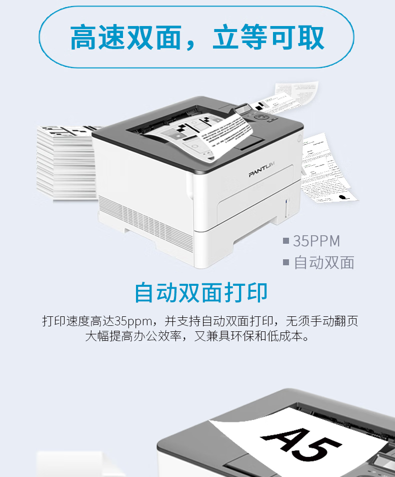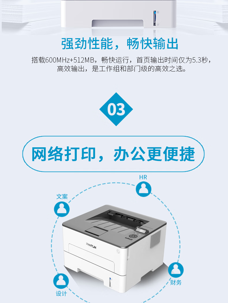 奔图(PANTUM)智惠系列 高速双面商用网络打印 黑白激光打印机(自动双面 A4打印 USB打印)P3301DN 自营