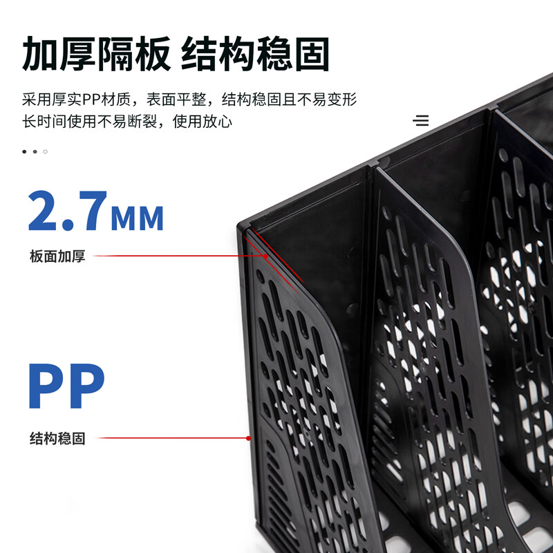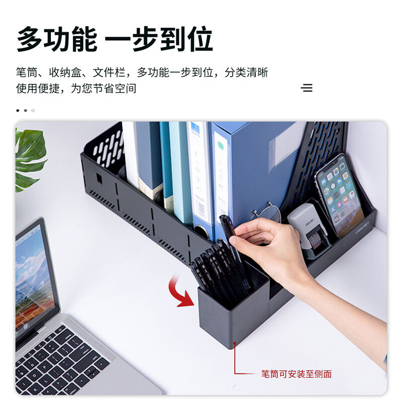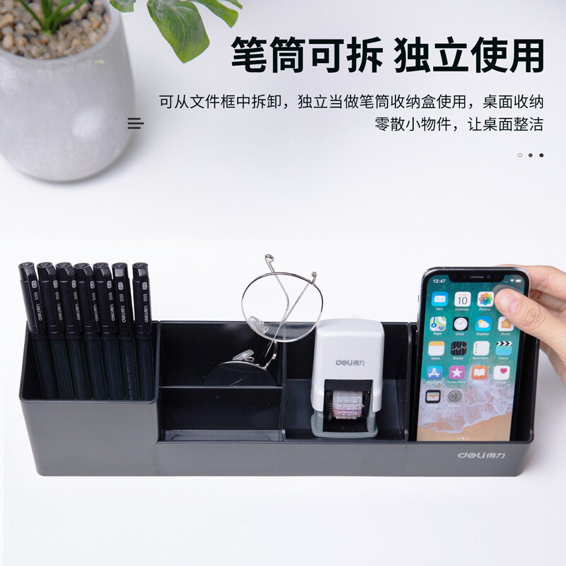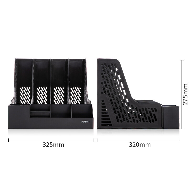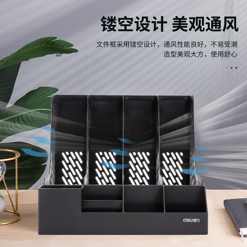 得力(deli)4联带笔筒收纳桌面文件框书立 办公室桌面多层资料架子 多功能镂空文件架 黑色78981 自营