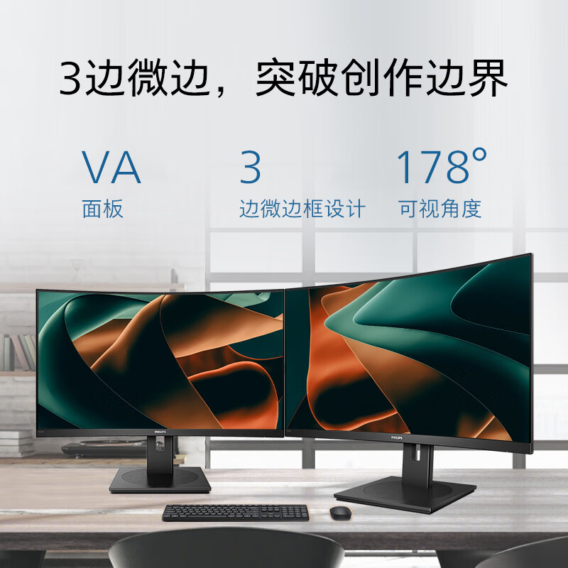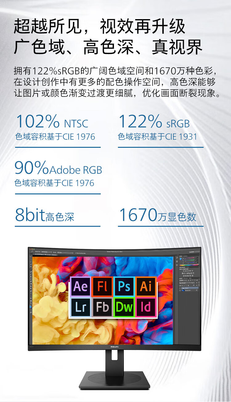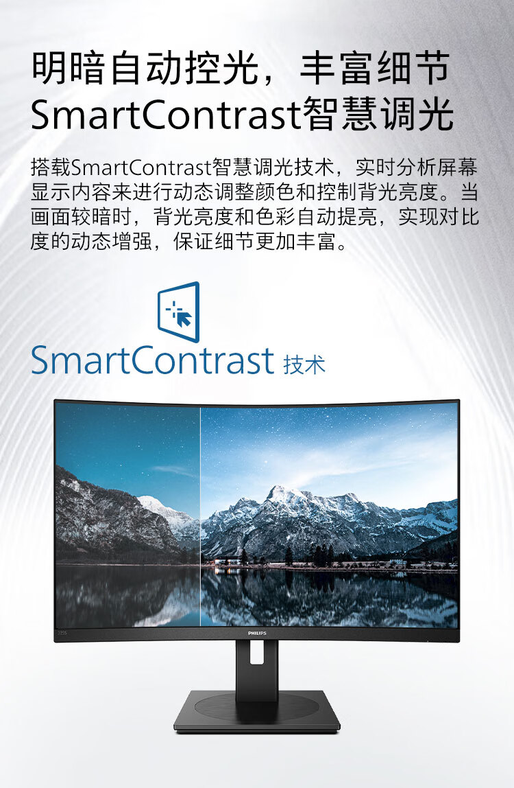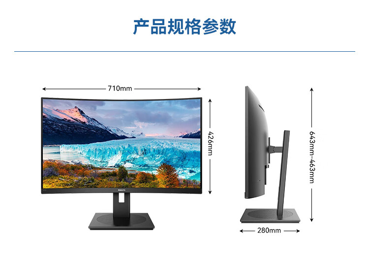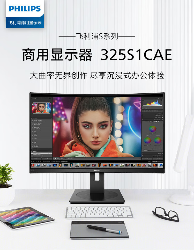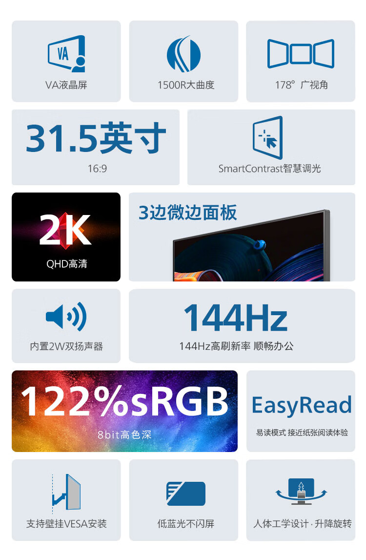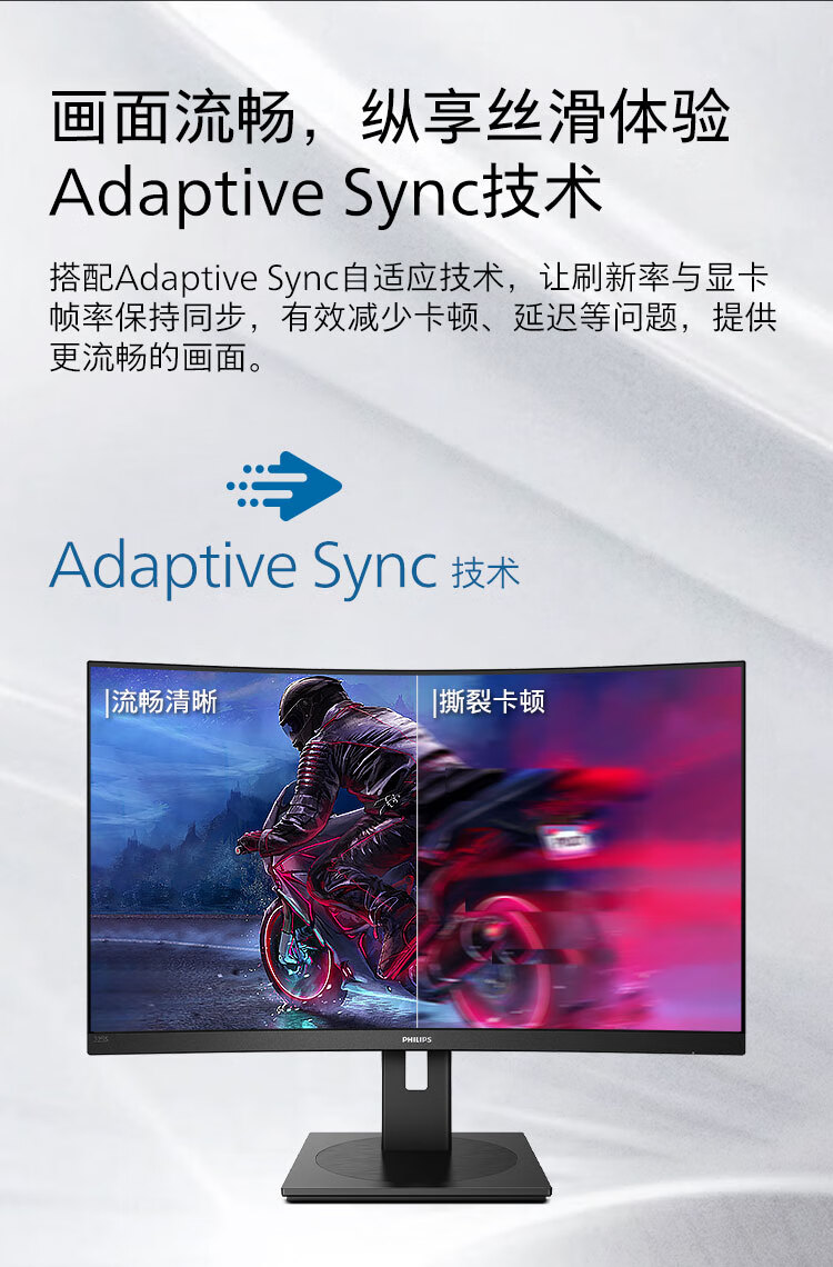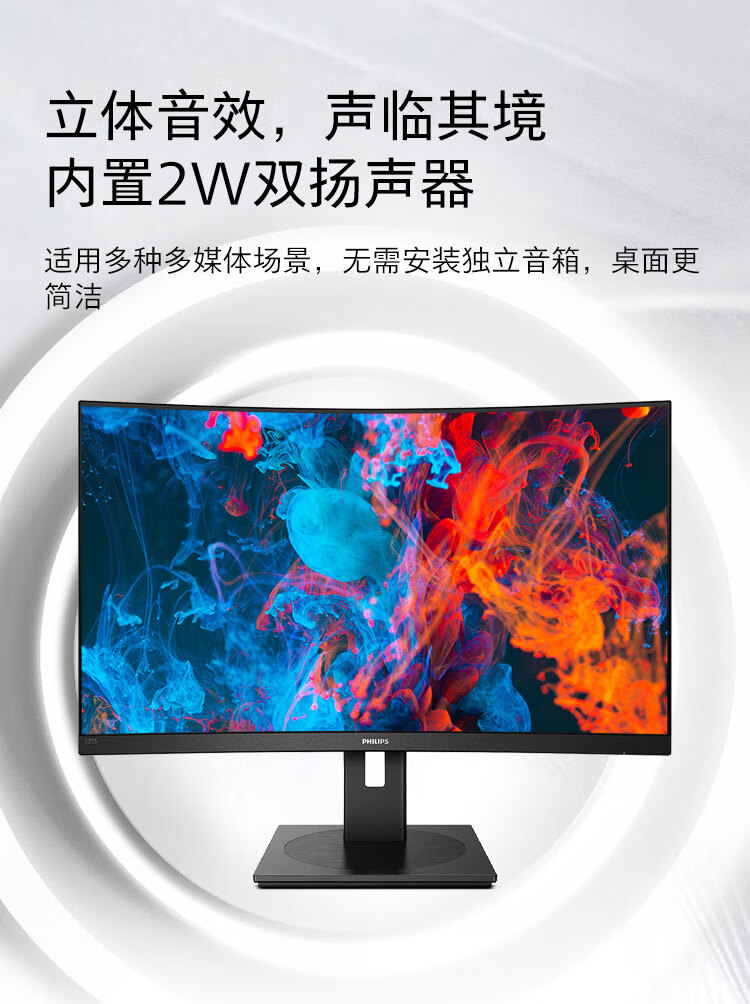 飞利浦 31.5英寸曲面显示器 2K高清 曲率1500R 144Hz刷新 122%sRGB色域 防撕裂技术 游戏电竞显示屏 325S1CAE 自营