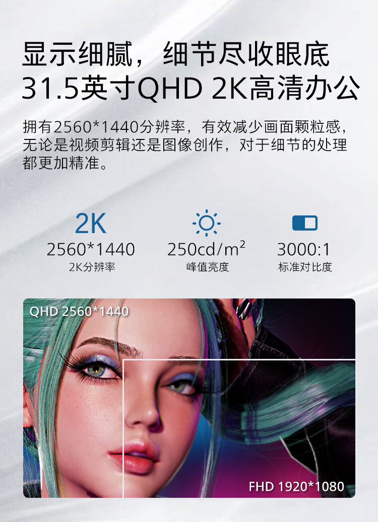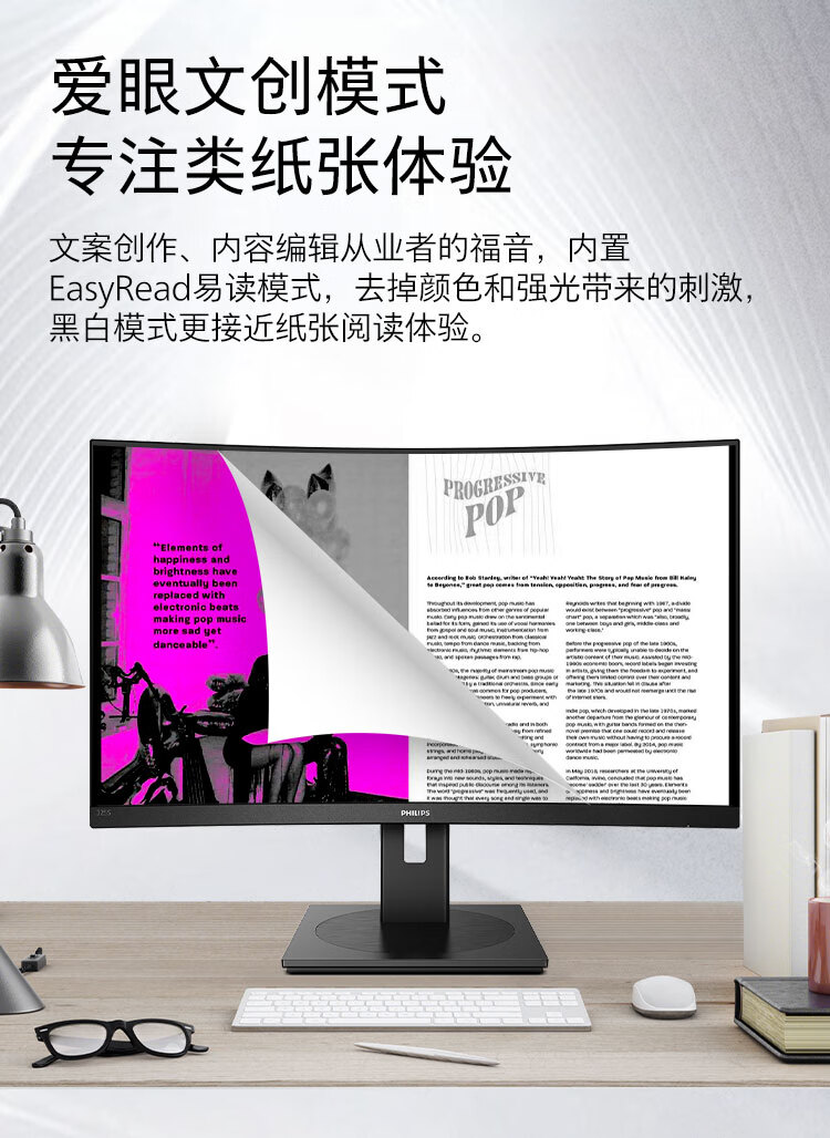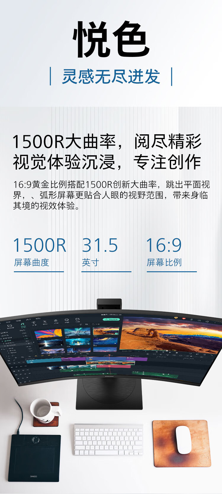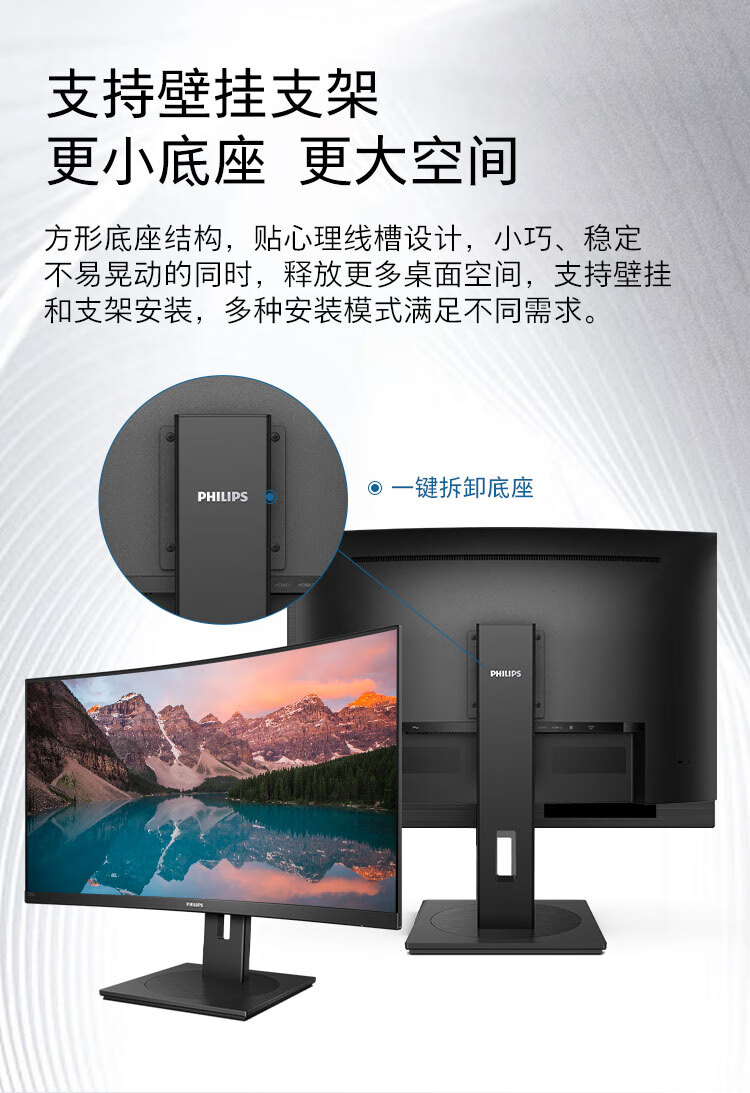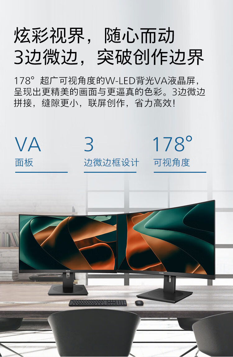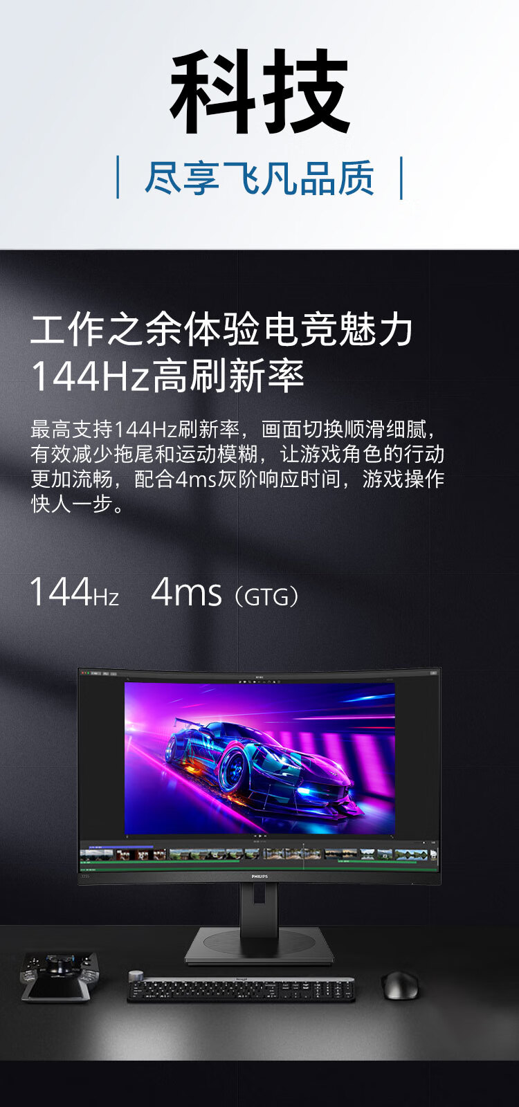飞利浦 31.5英寸曲面显示器 2K高清 曲率1500R 144Hz刷新 122%sRGB色域 防撕裂技术 游戏电竞显示屏 325S1CAE 自营