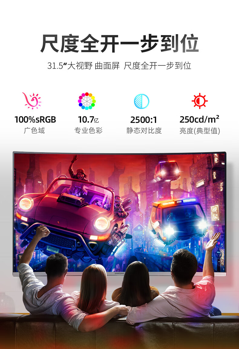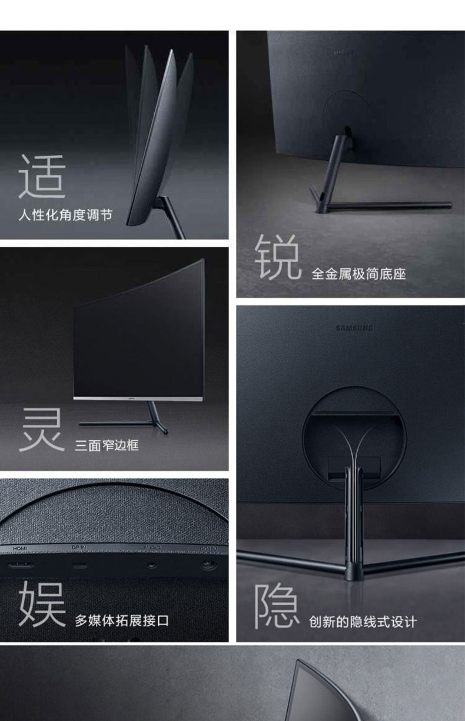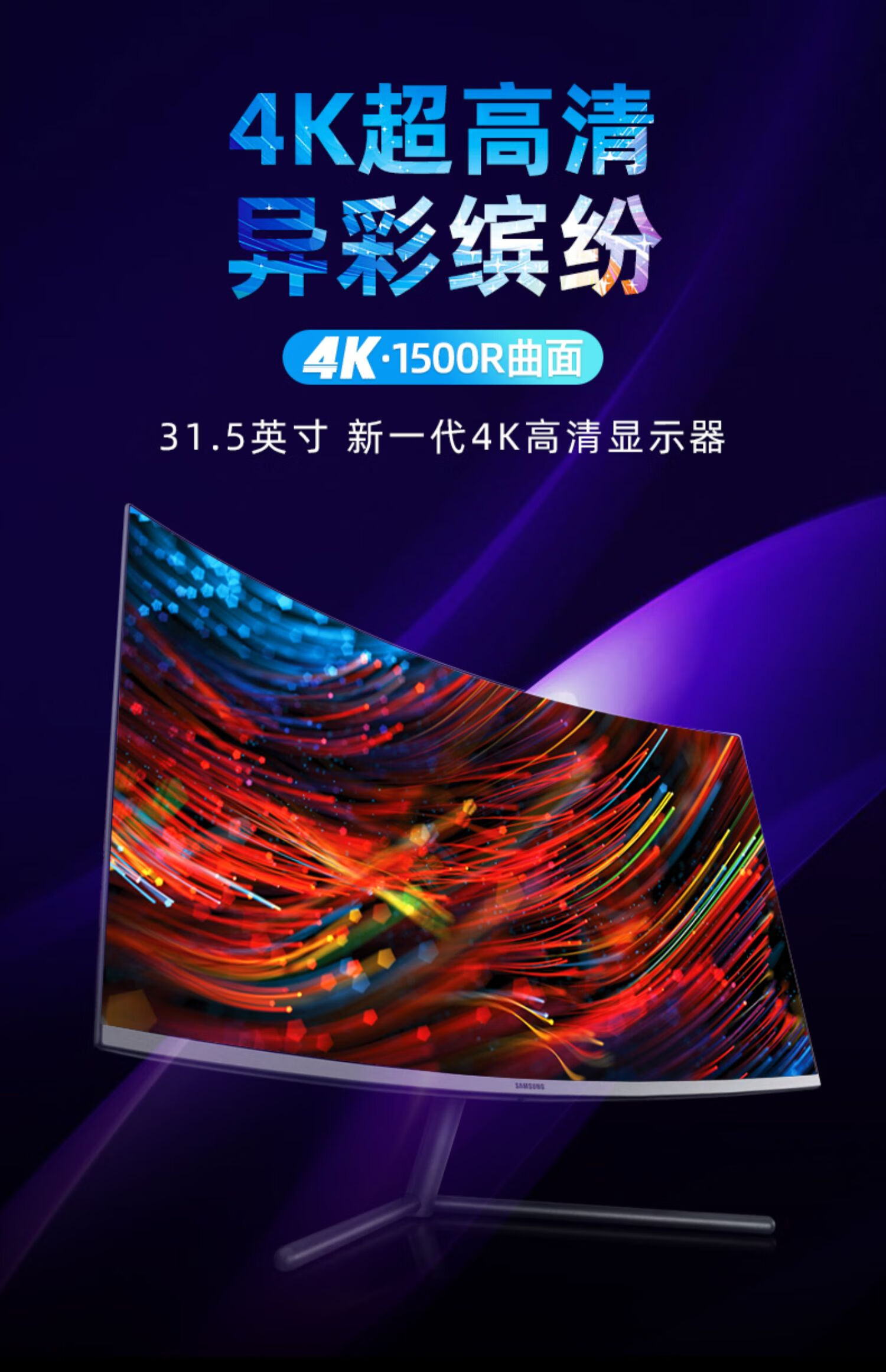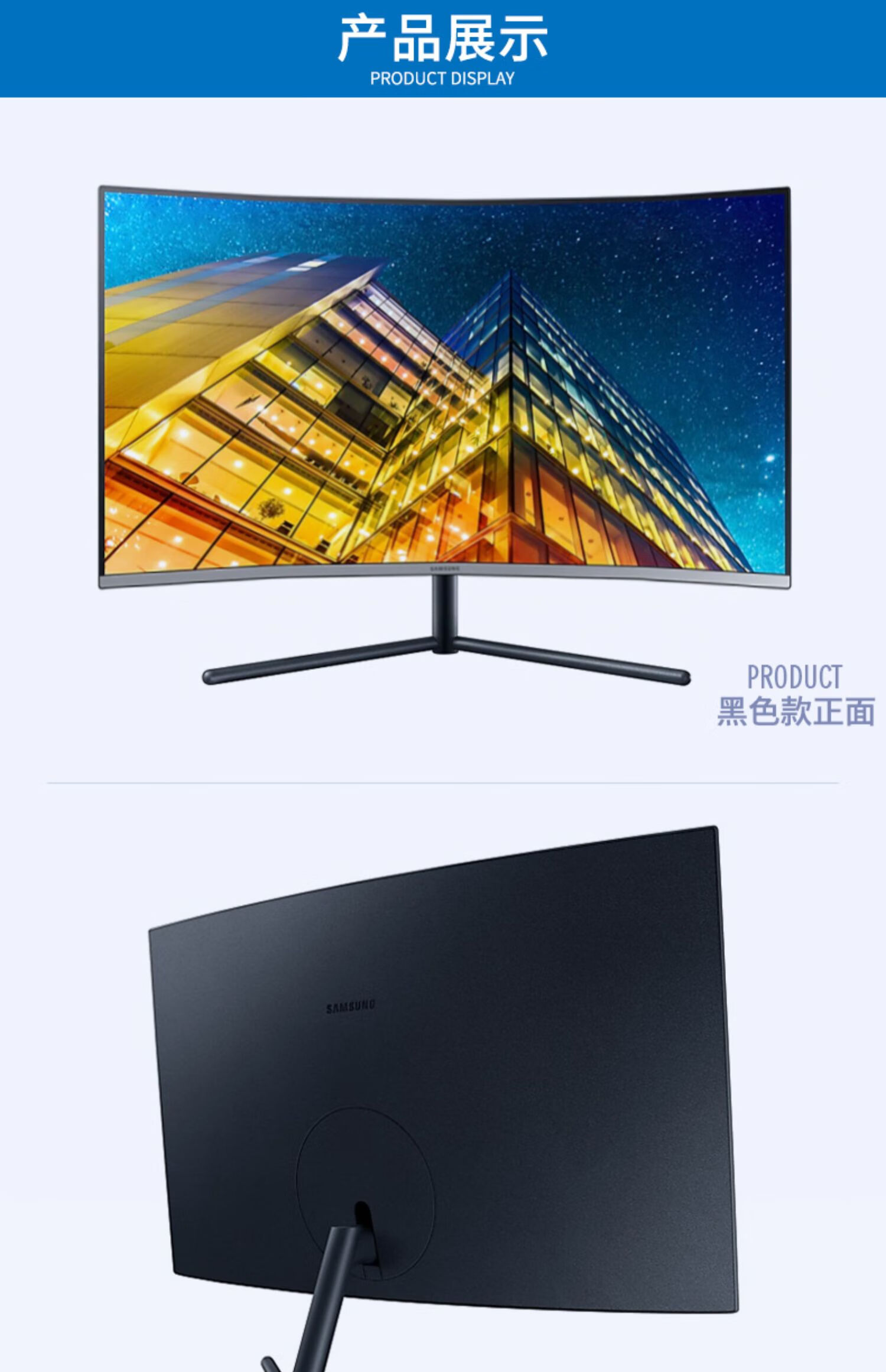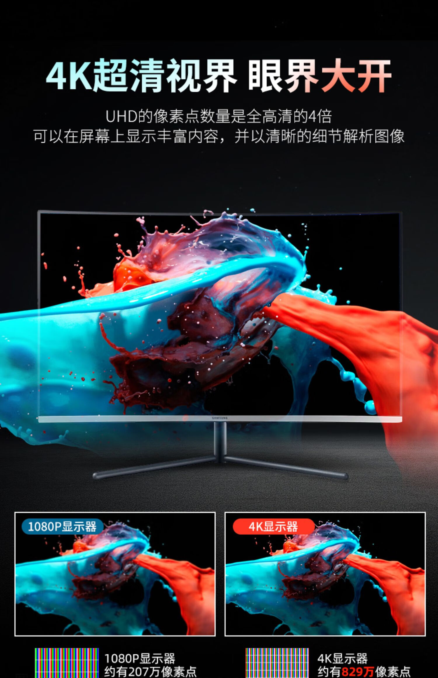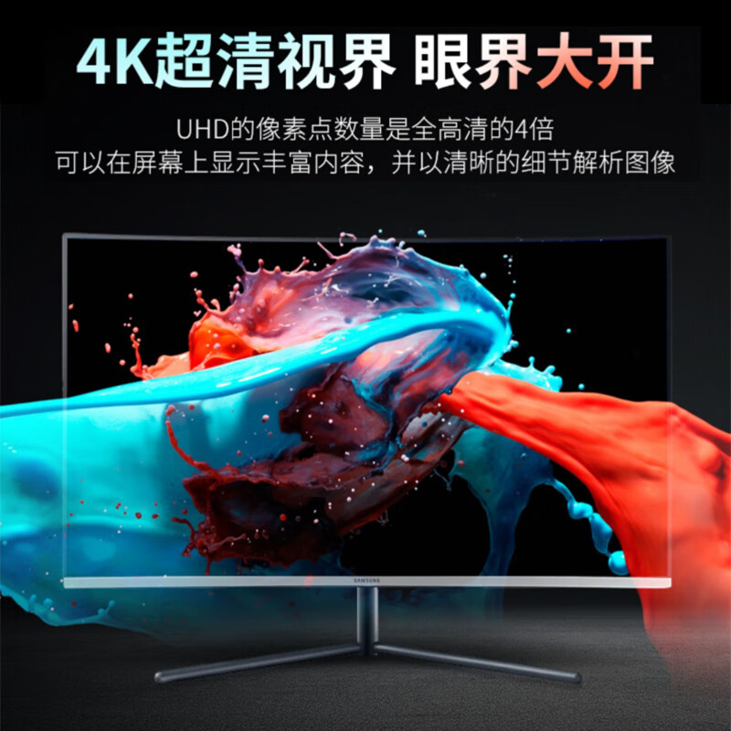 三星(SAMSUNG) 32英寸4K曲面屏 超高清设计绘图电脑显示器 台式外接ps5游戏屏幕 窄边框 银黑色 U32R590CWC 自营