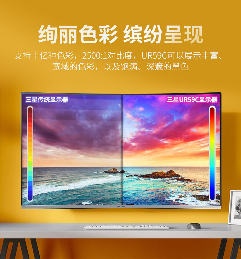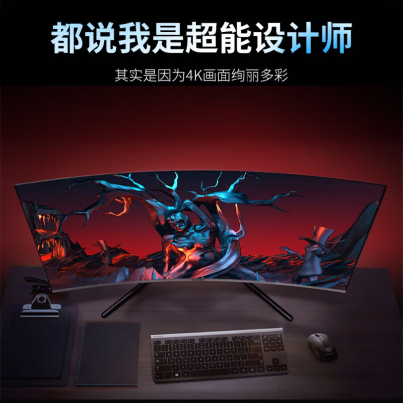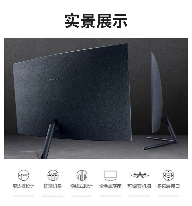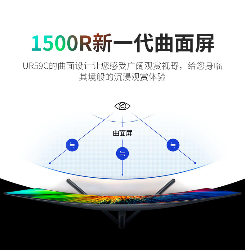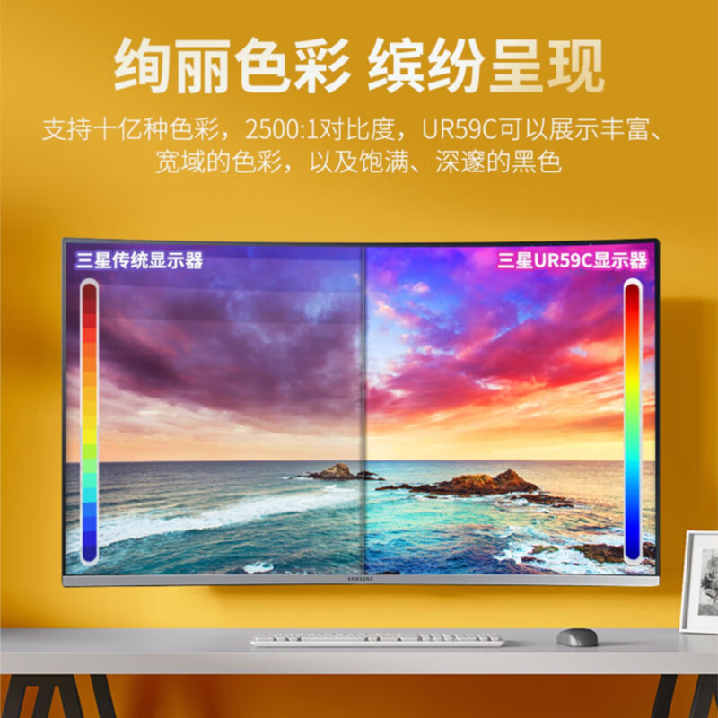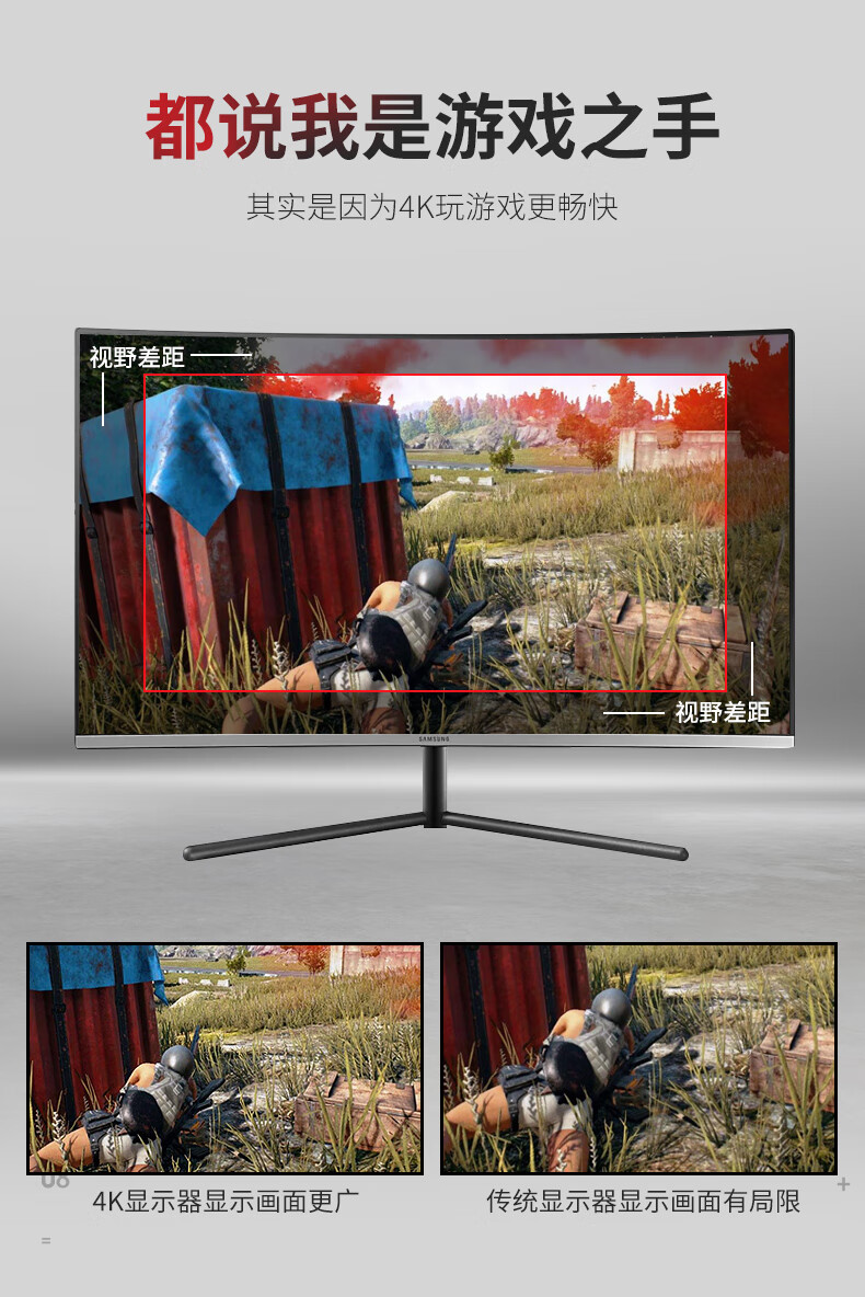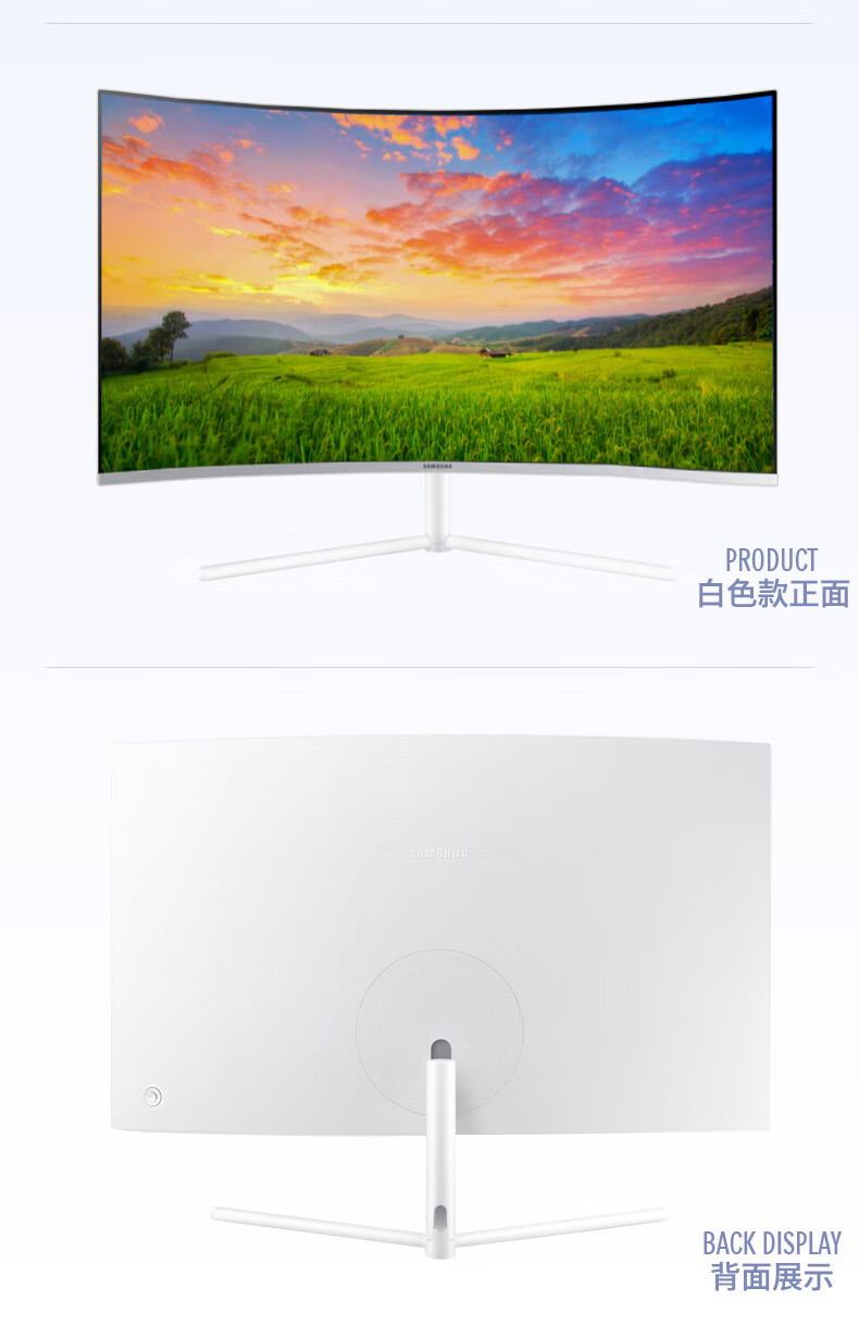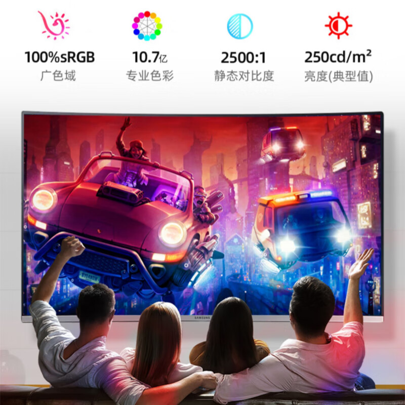 三星(SAMSUNG) 32英寸4K曲面屏 超高清设计绘图电脑显示器 台式外接ps5游戏屏幕 窄边框 银黑色 U32R590CWC 自营
